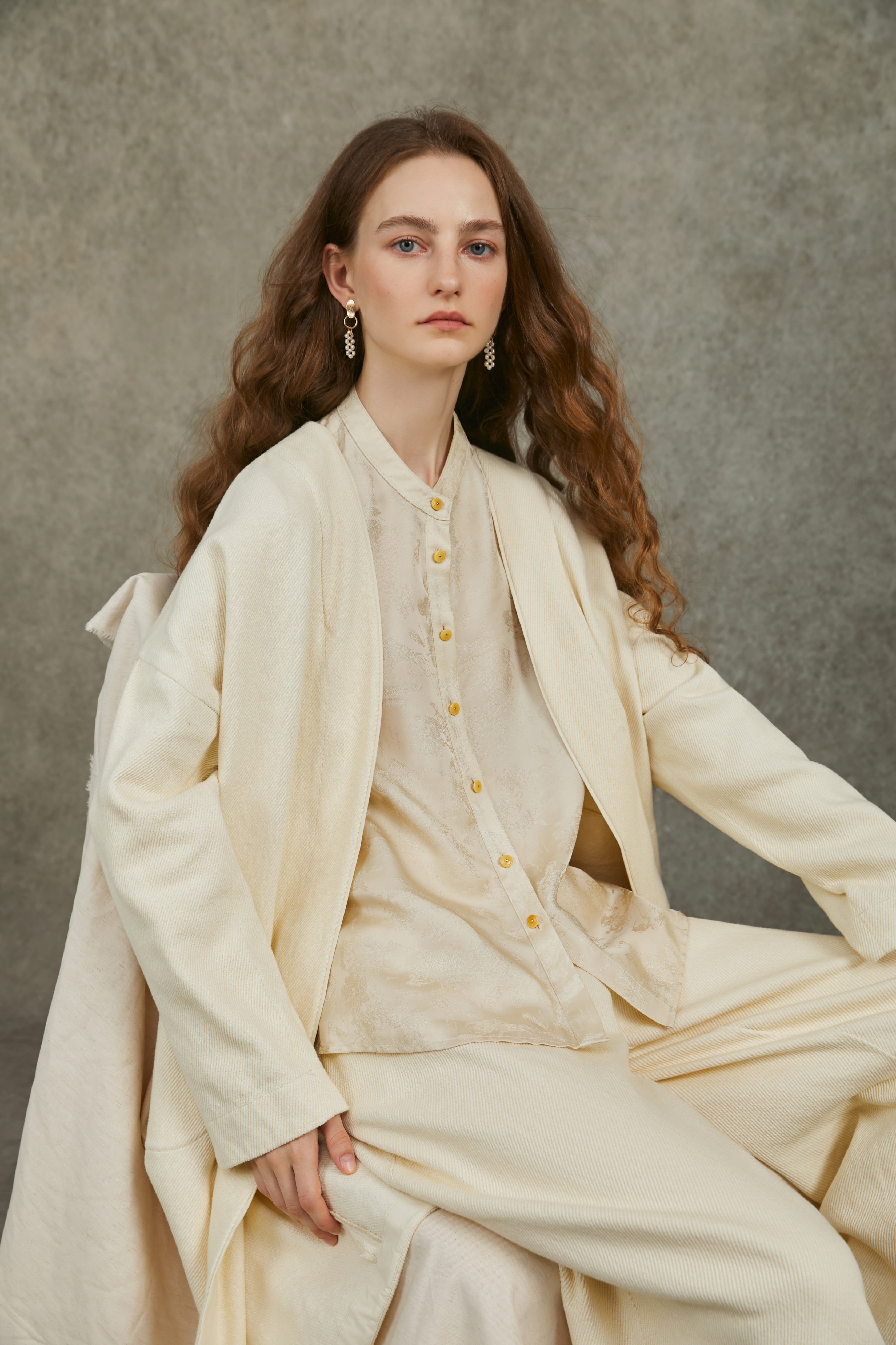 Famecoco 100% Cotton Waisted-Tailored Blazer