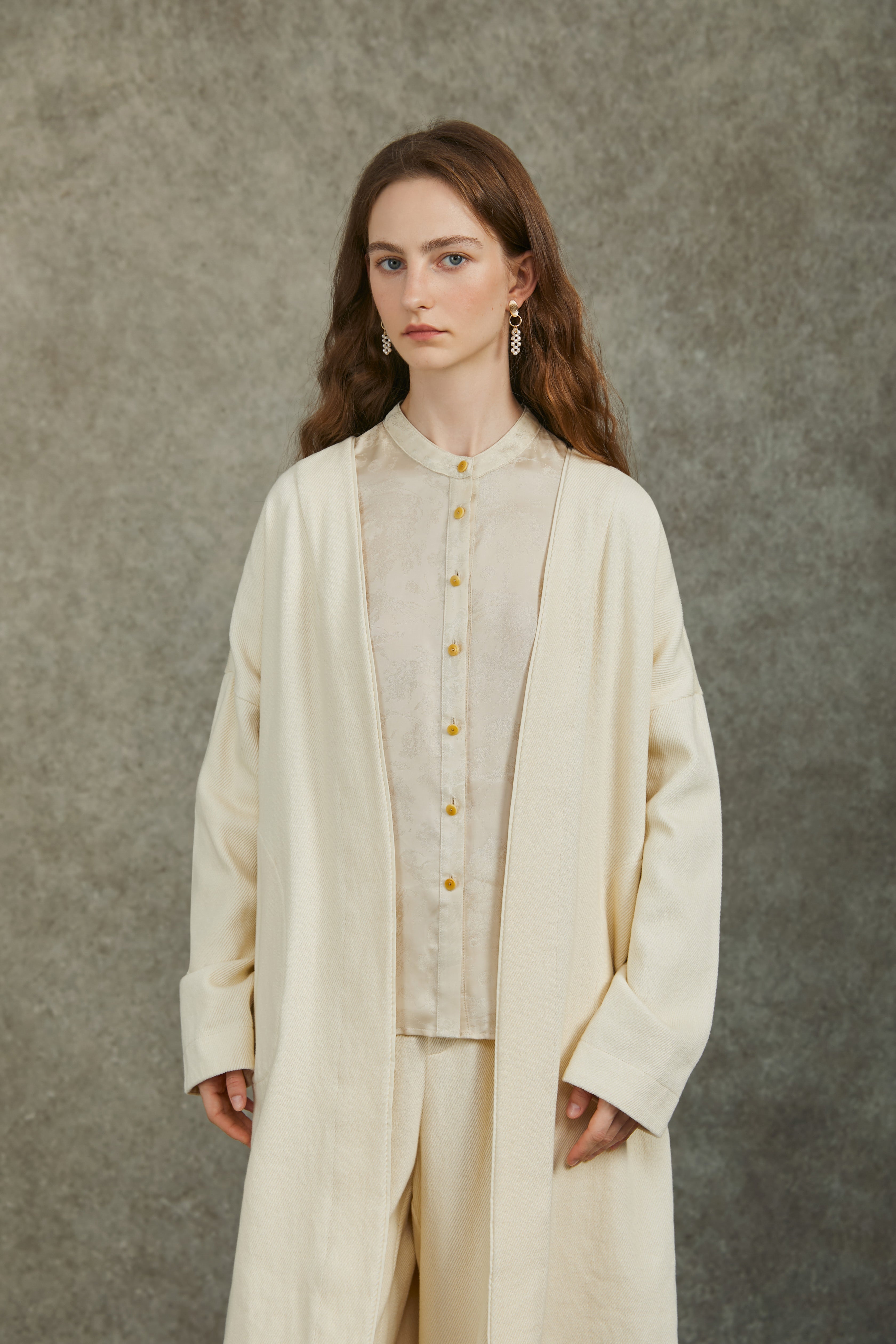Famecoco Artistic Wool-Blend Knit Cardigan