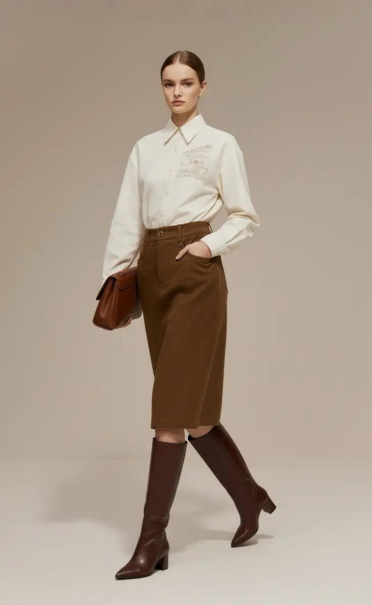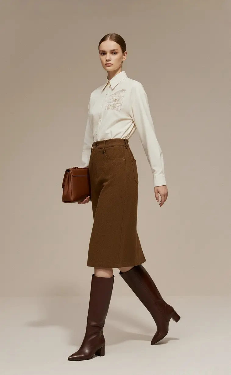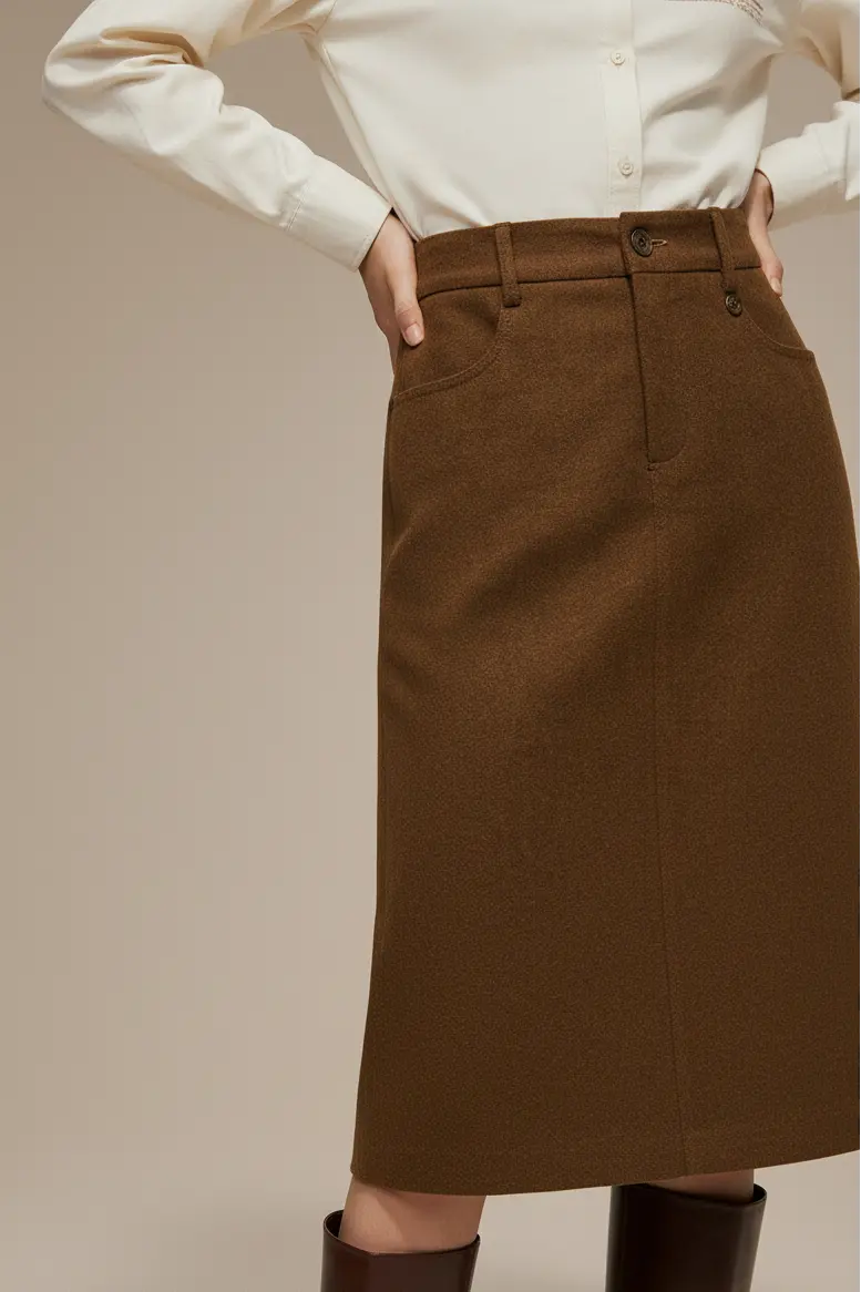 Famecoco 100% Cotton High-Waist Straight Skirt