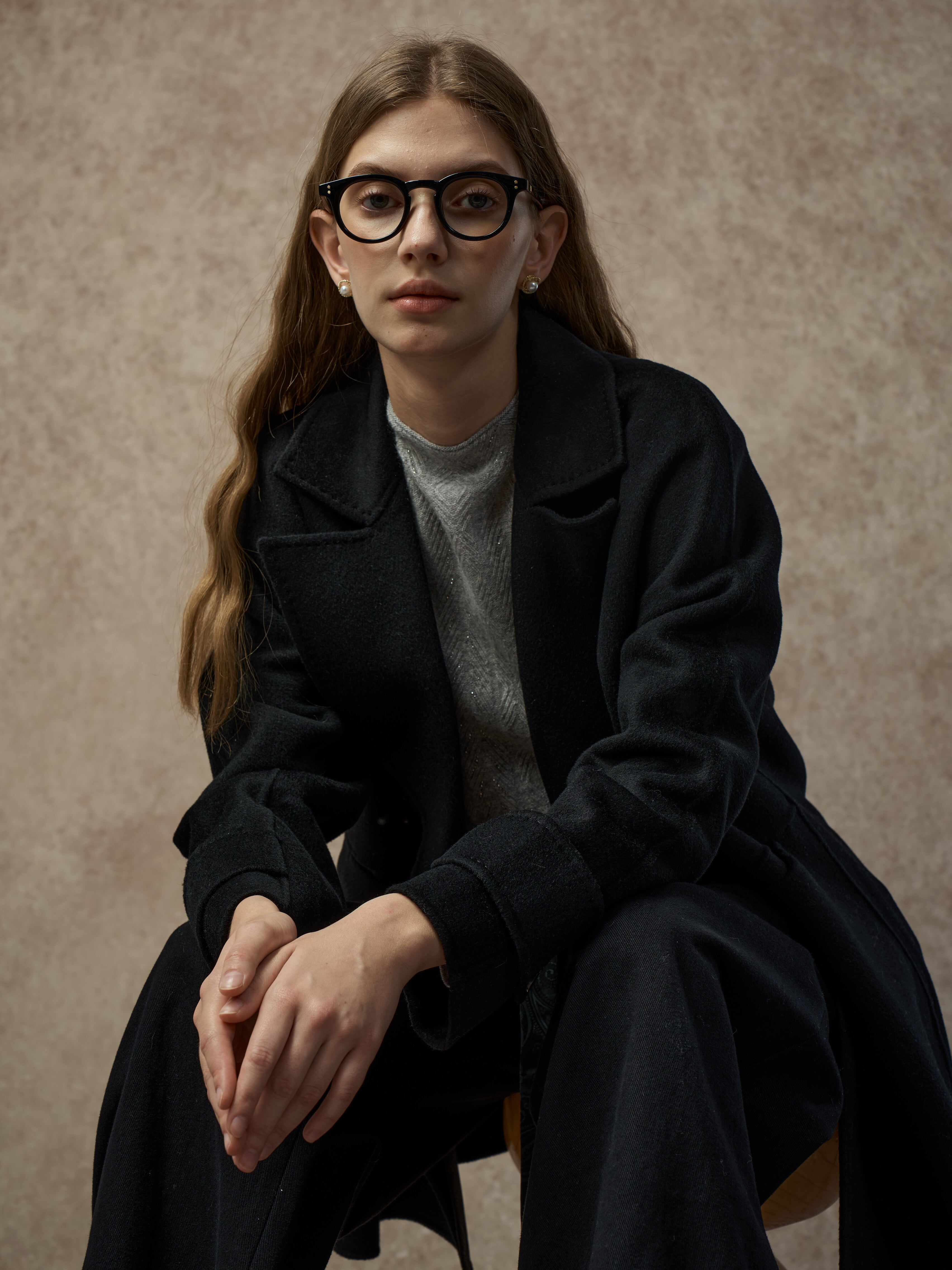 Famecoco Double-Face 100% Wool Long Coat with Contrast Cuffs