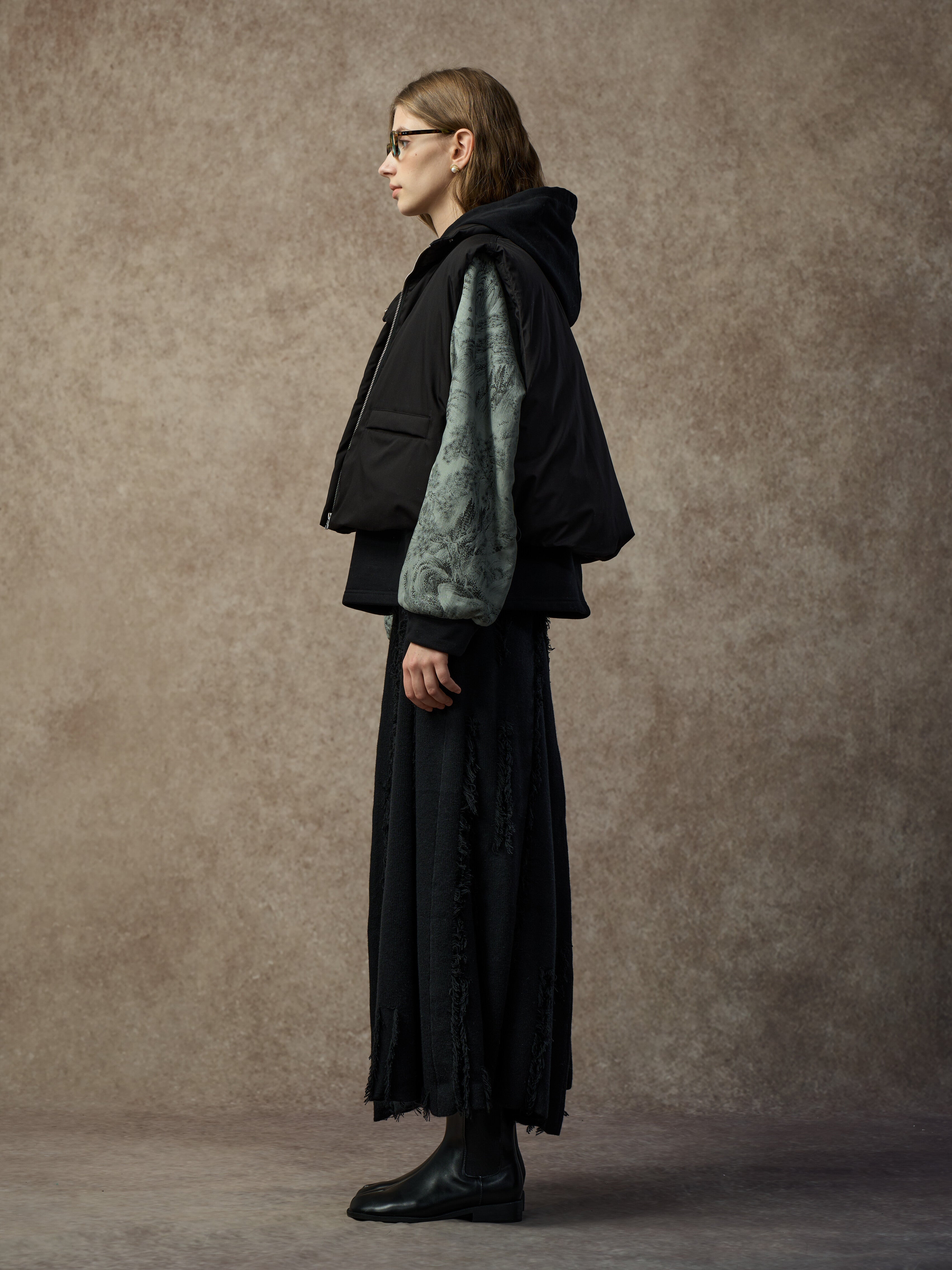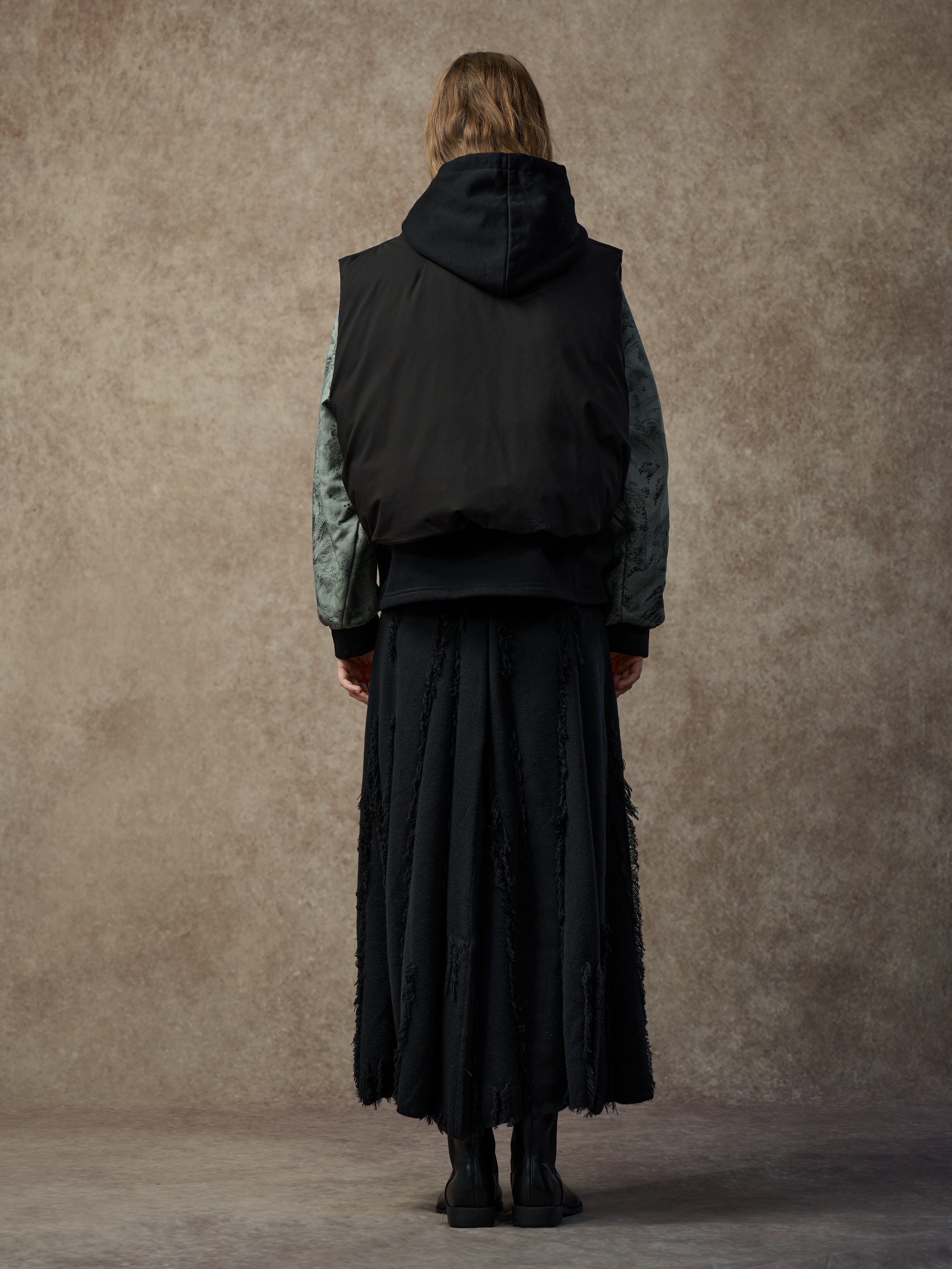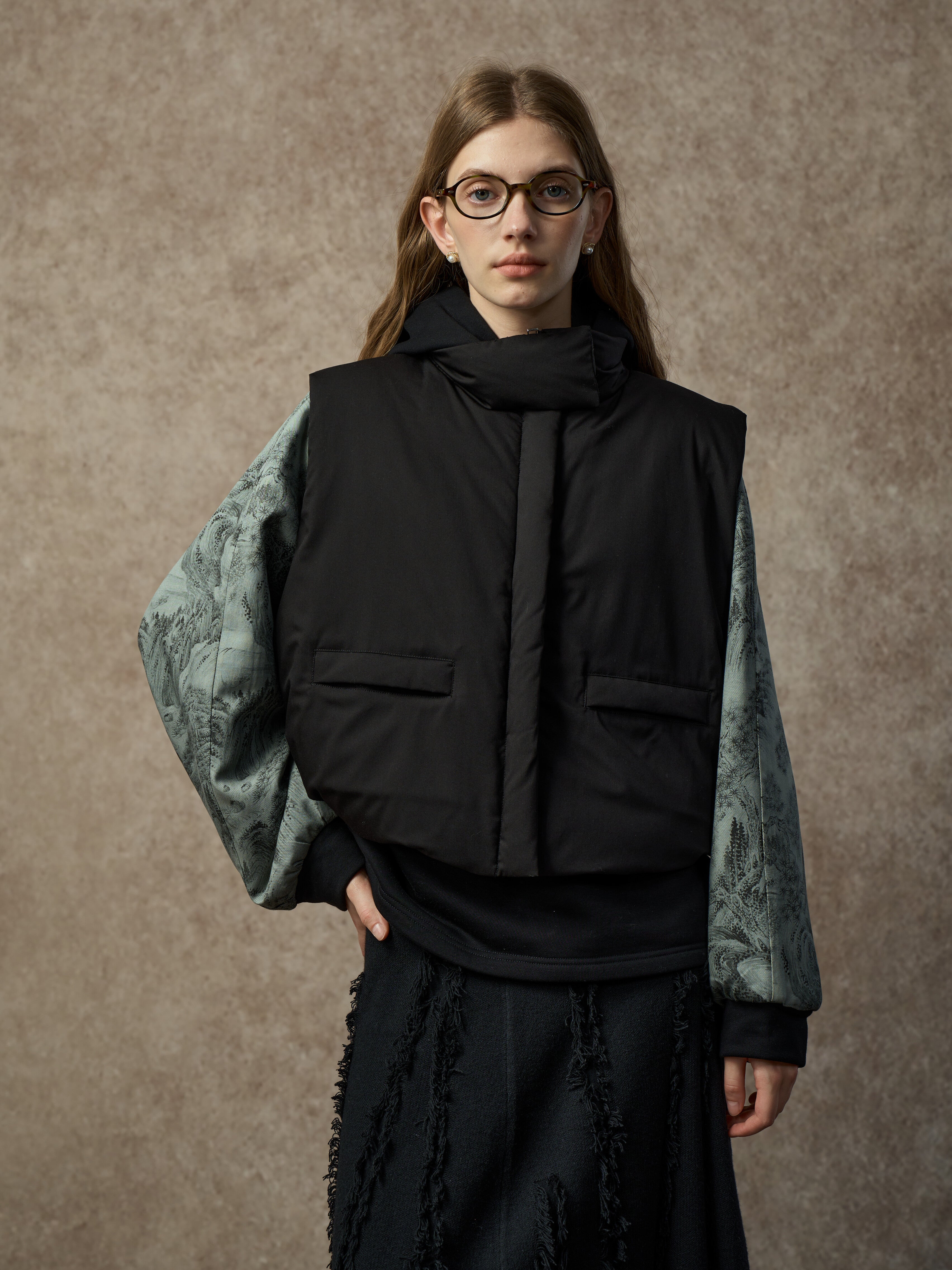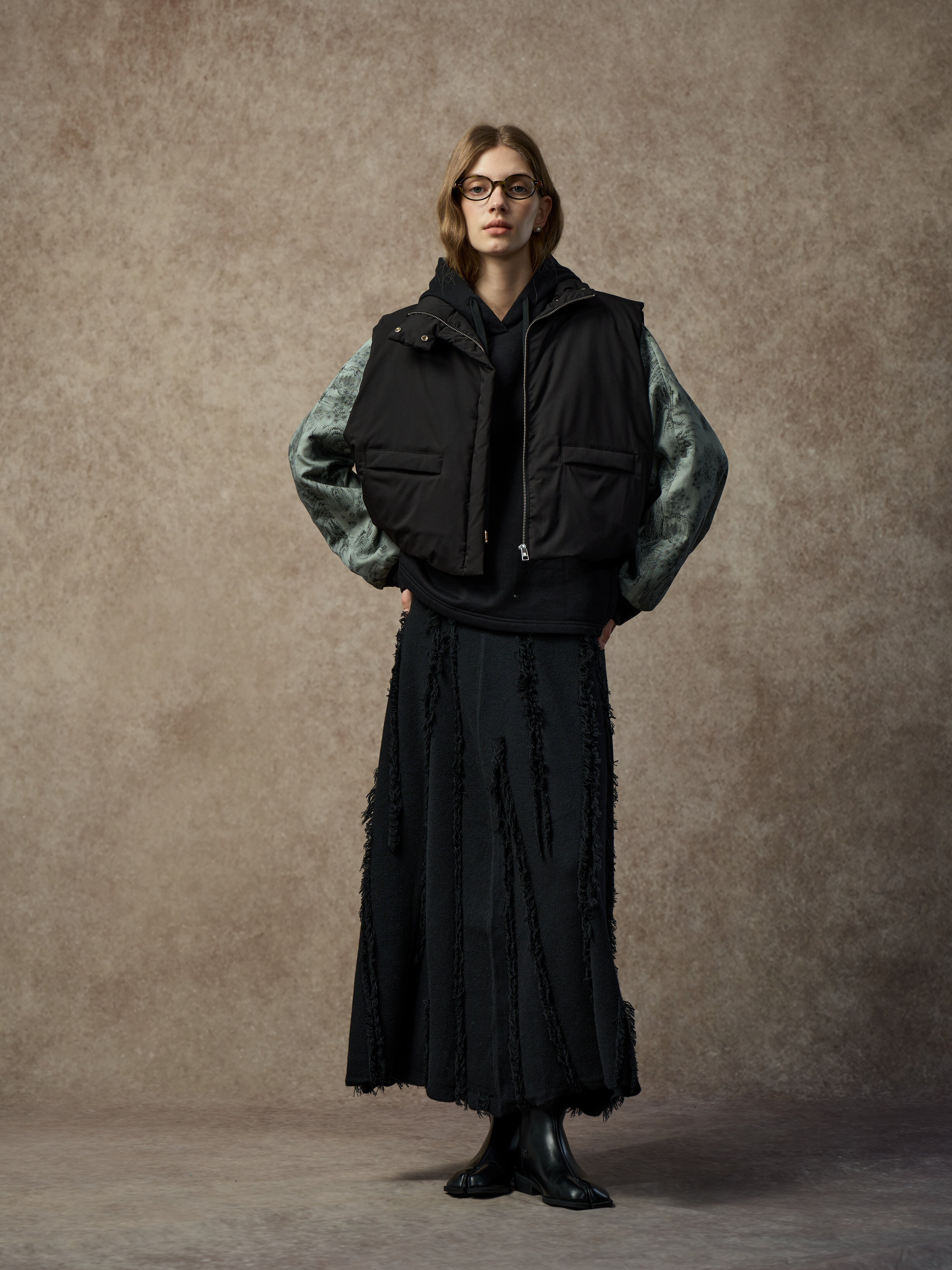 A minimalist down vest made from high-density, water-resistant fabric that is soft and breathable. Filled with premium white duck down for lightweight warmth. Designed with an adjustable drawstring hem and relaxed fit—comfortable to wear and easy to layer without bulk.