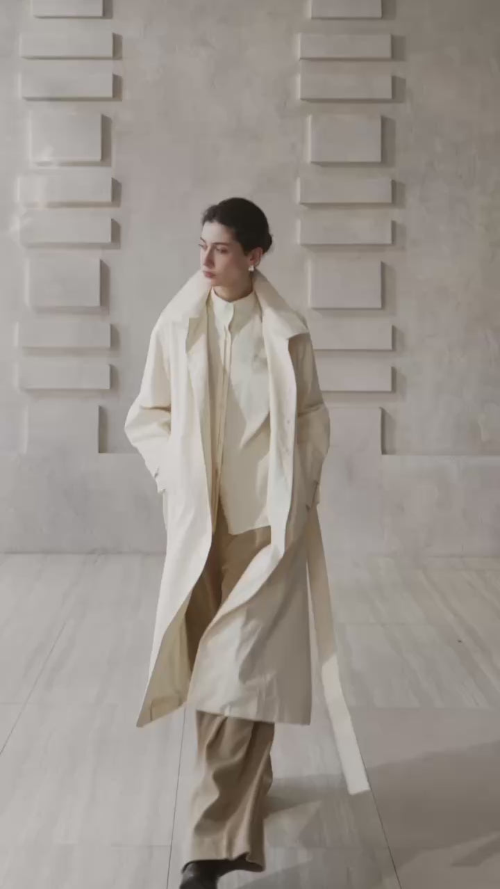 A timeless trench coat with a high collar, button‑front, and belted waist. Made from 100% cotton with cotton lining, it’s breathable, durable, and refined for both casual and formal occasions.