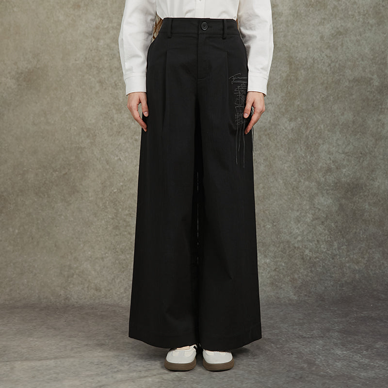 Famecoco Embroidered High-Waist Wide-Leg Pants