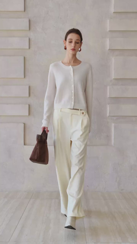 Famecoco Wool Pearl Button Cardigan