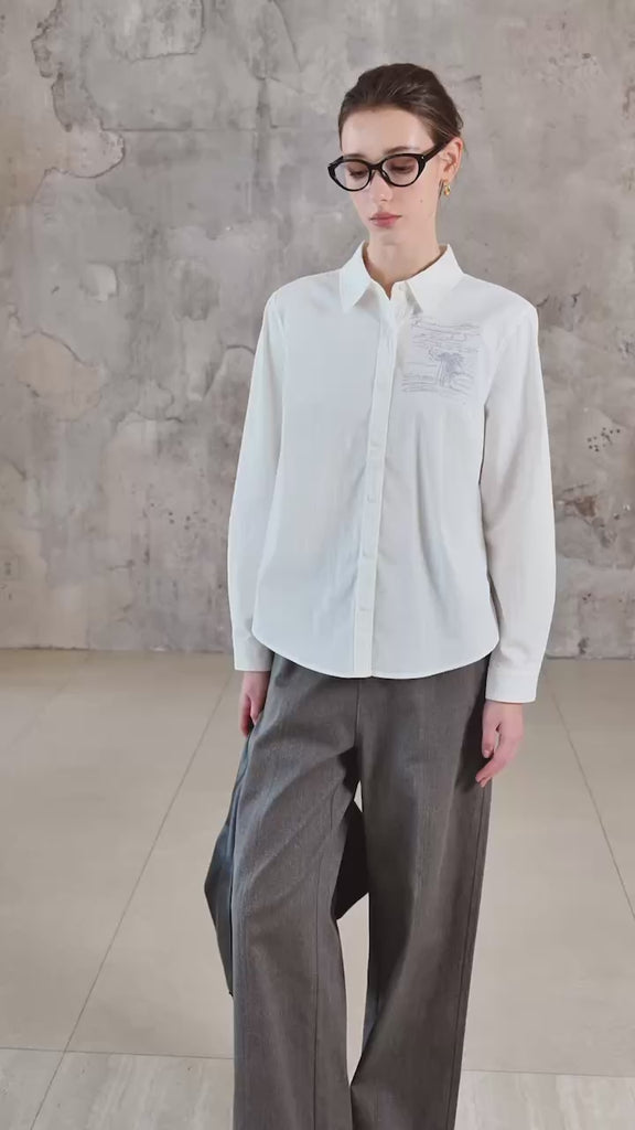 Famecoco Long-Sleeve Shirt with Embroidered Graphic