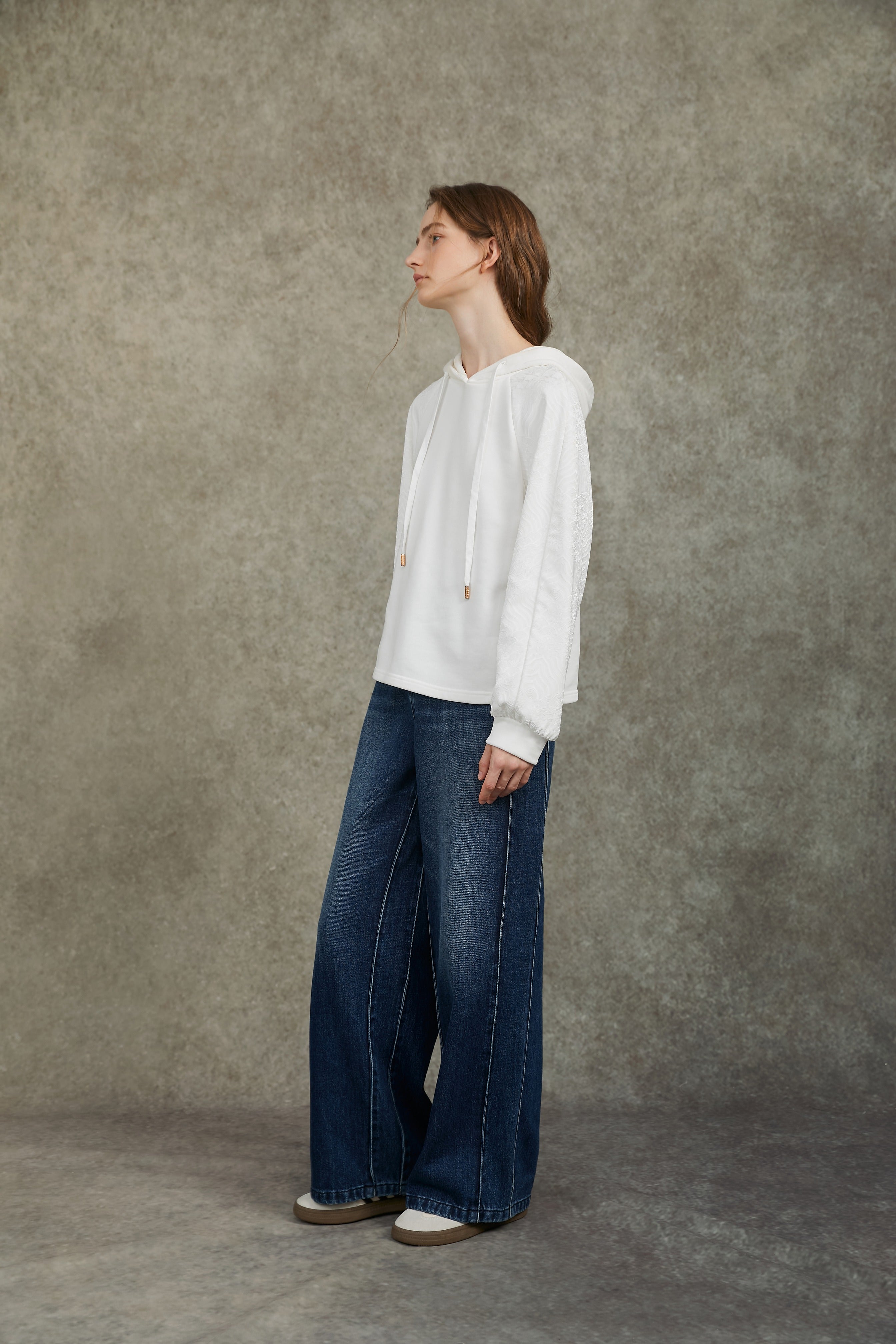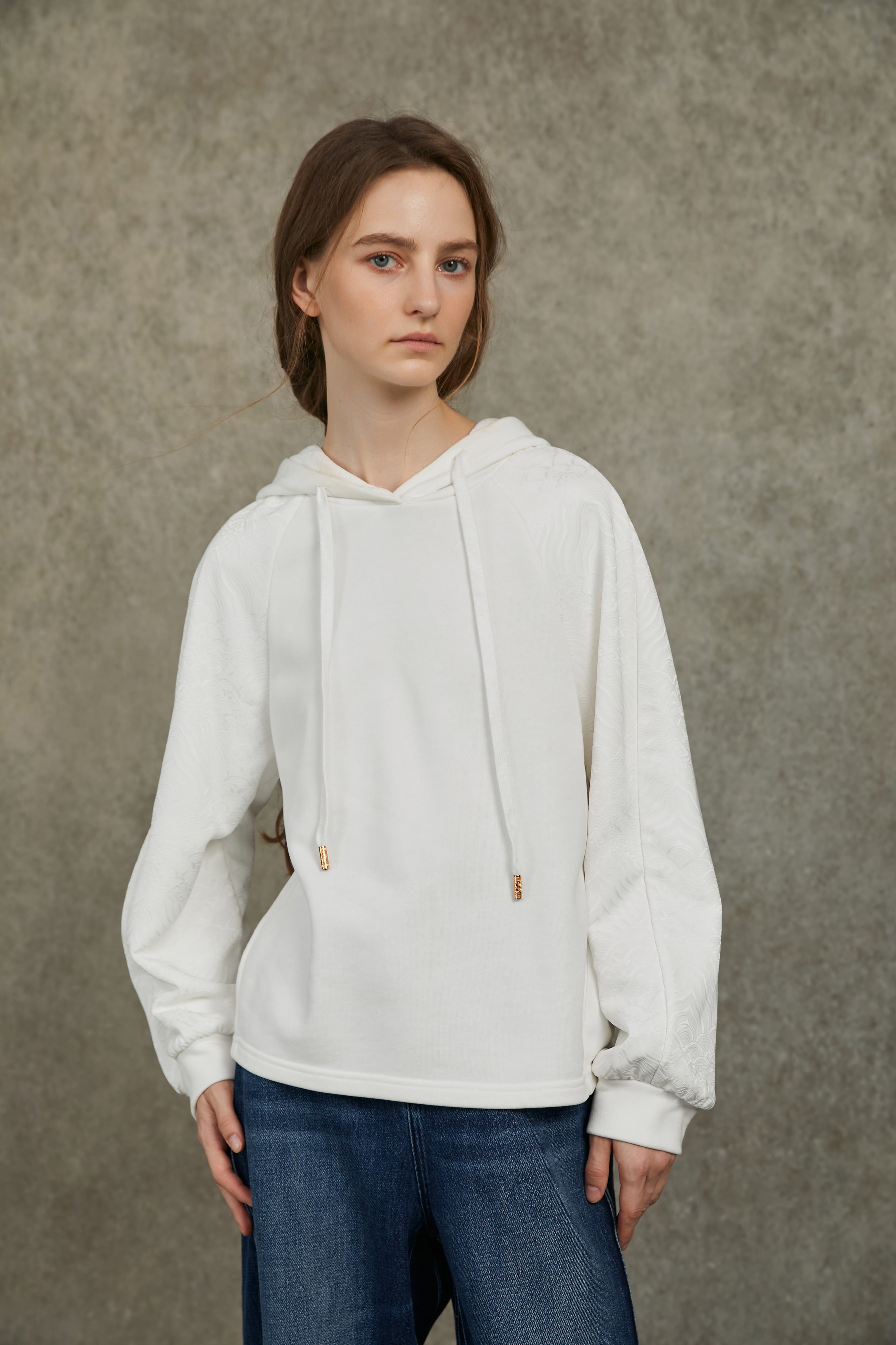 Famecoco Jacquard Patchwork Embroidered Hoodie