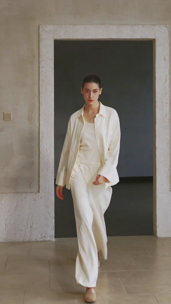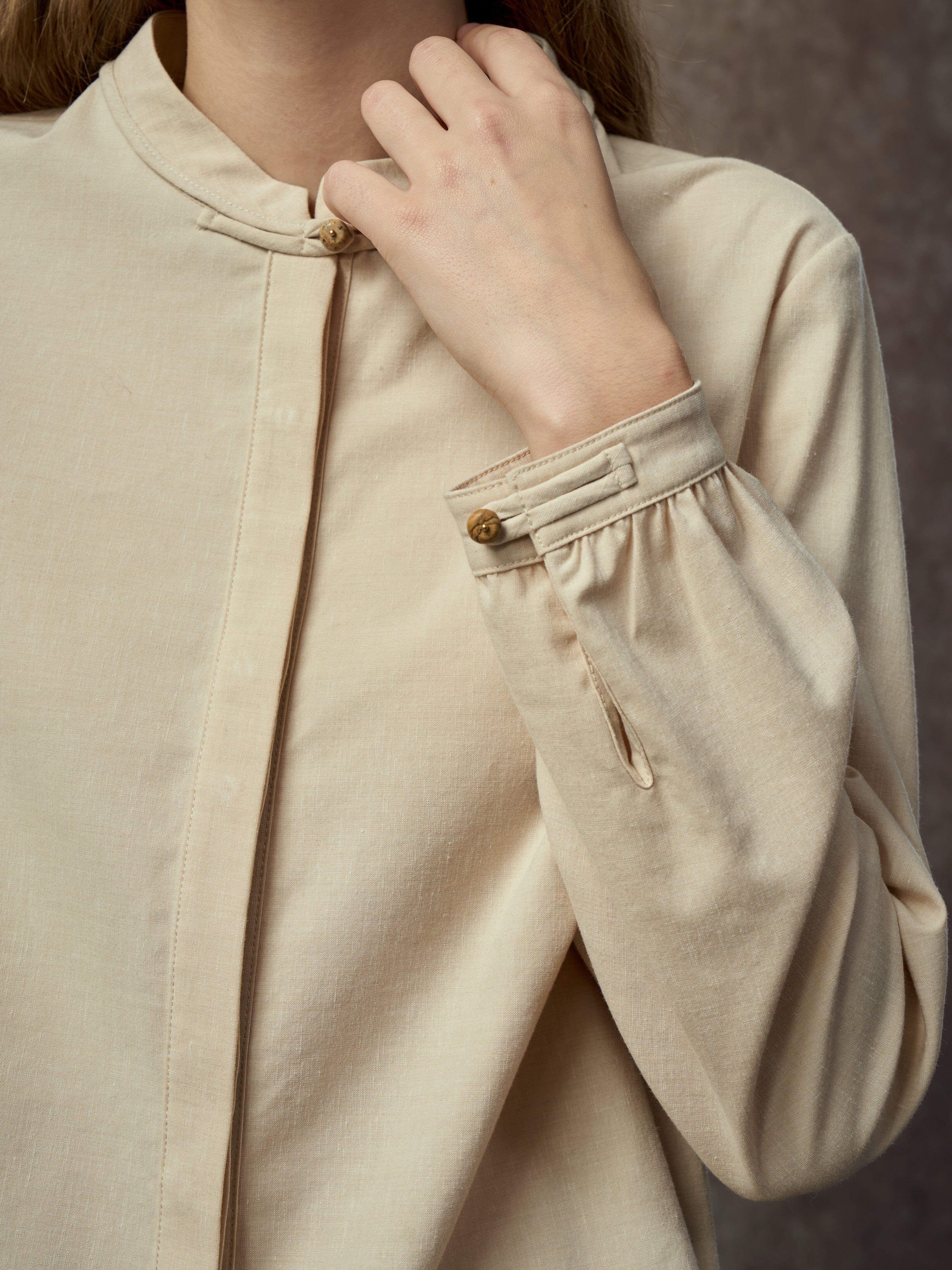 Famecoco Linen Blend Mandarin Collar Shirt
