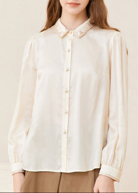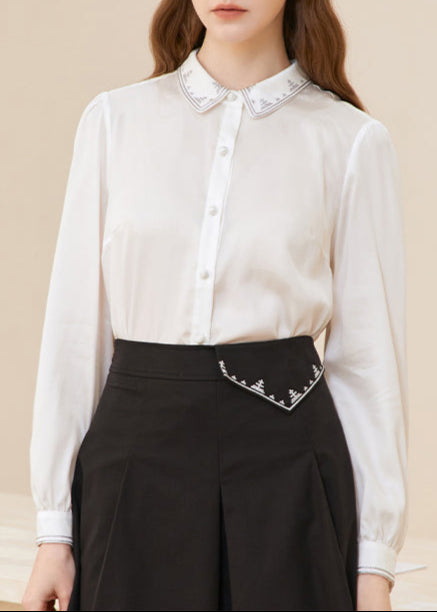 Famecoco Soft Lyocell Embroidered Collar Blouse