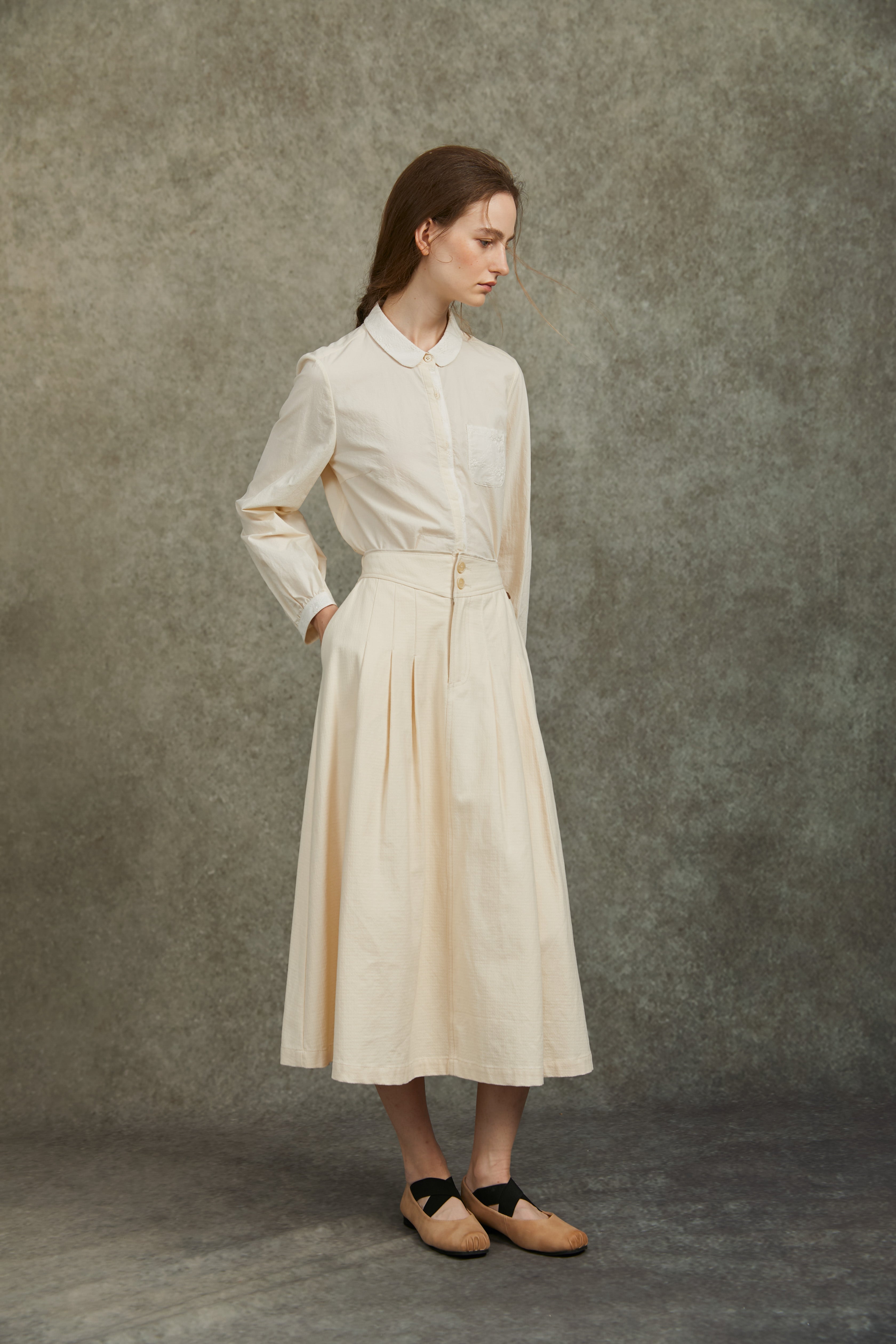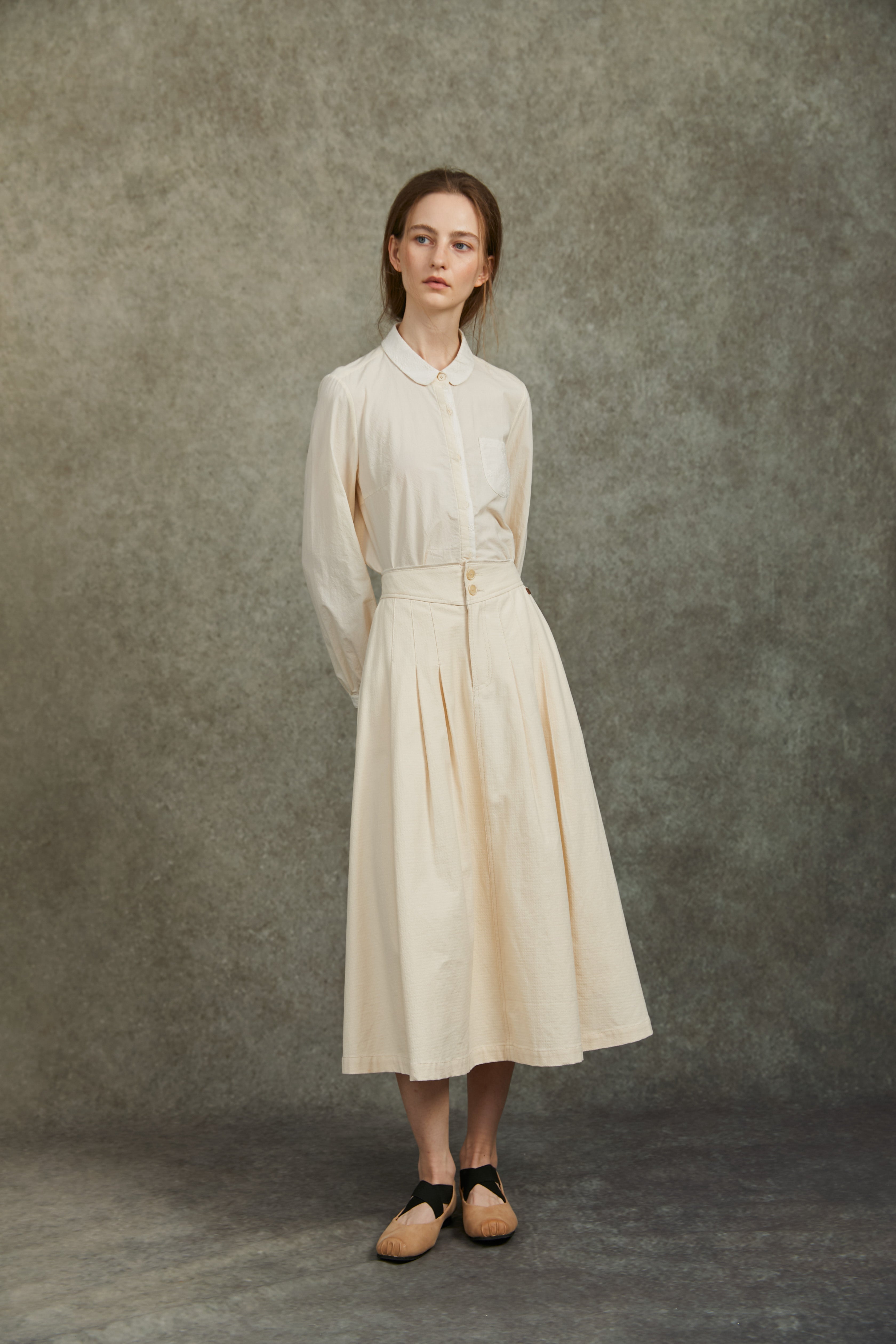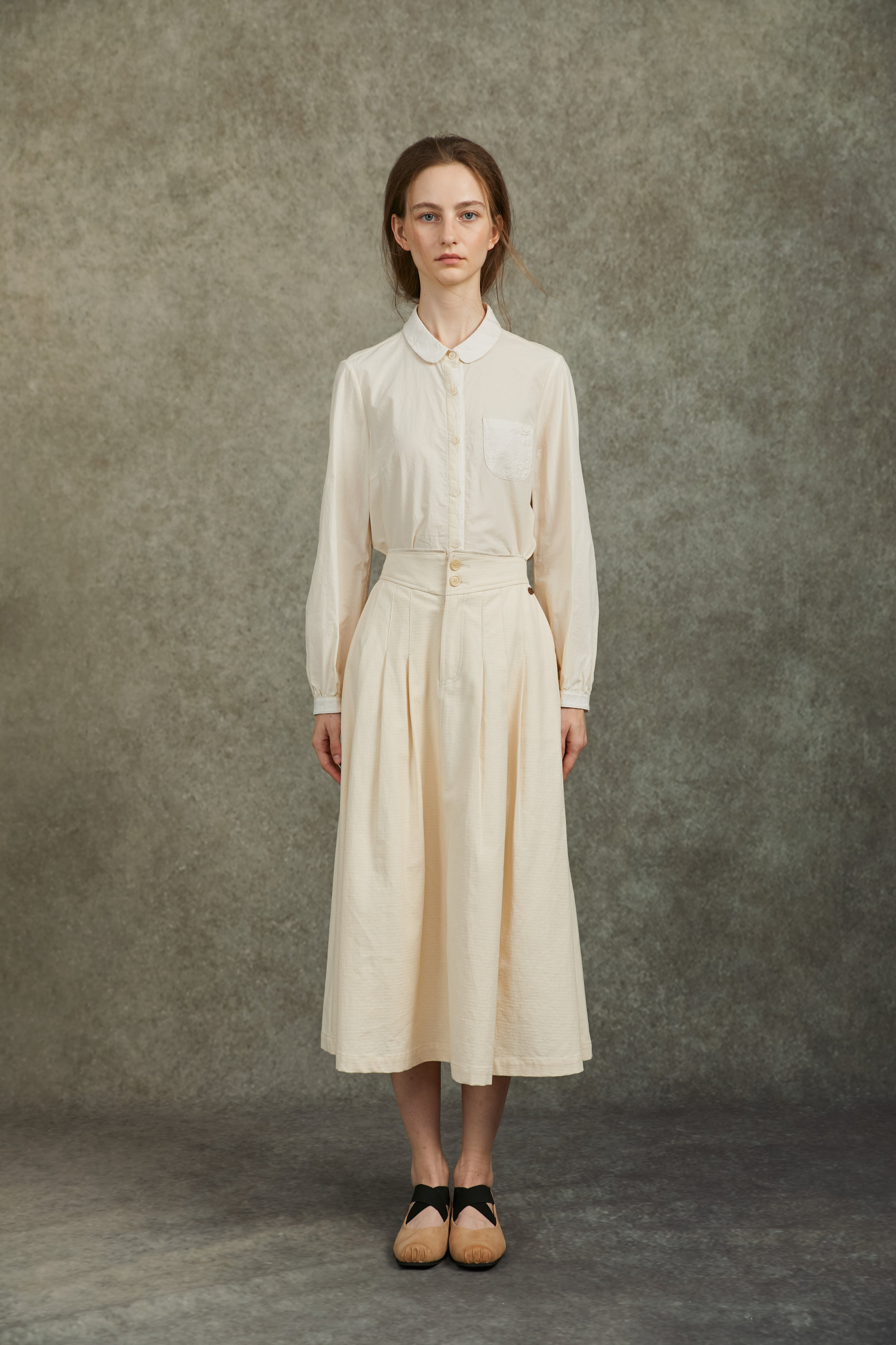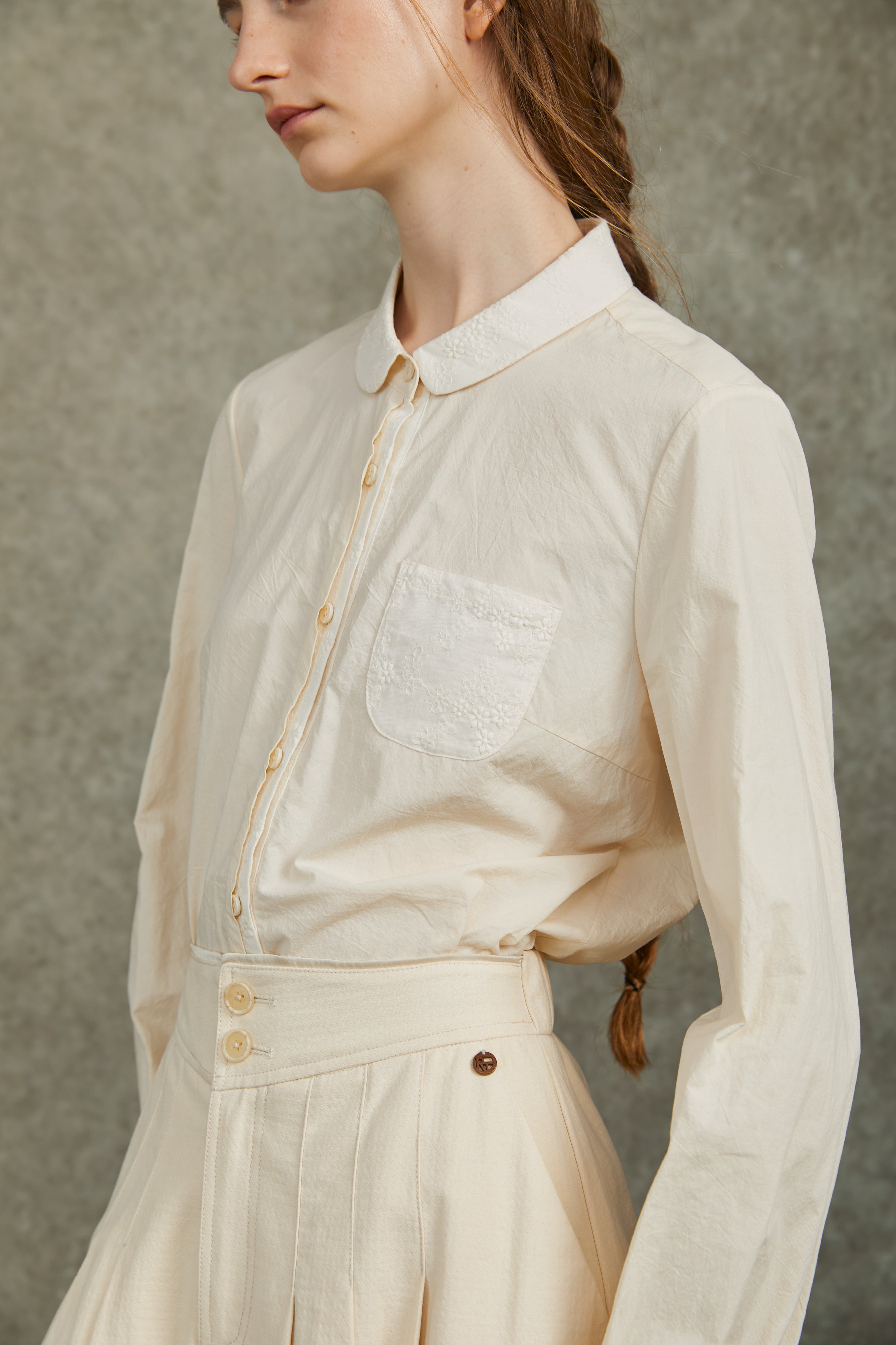 Famecoco Embroidered Collar & Cuff Cotton Blouse