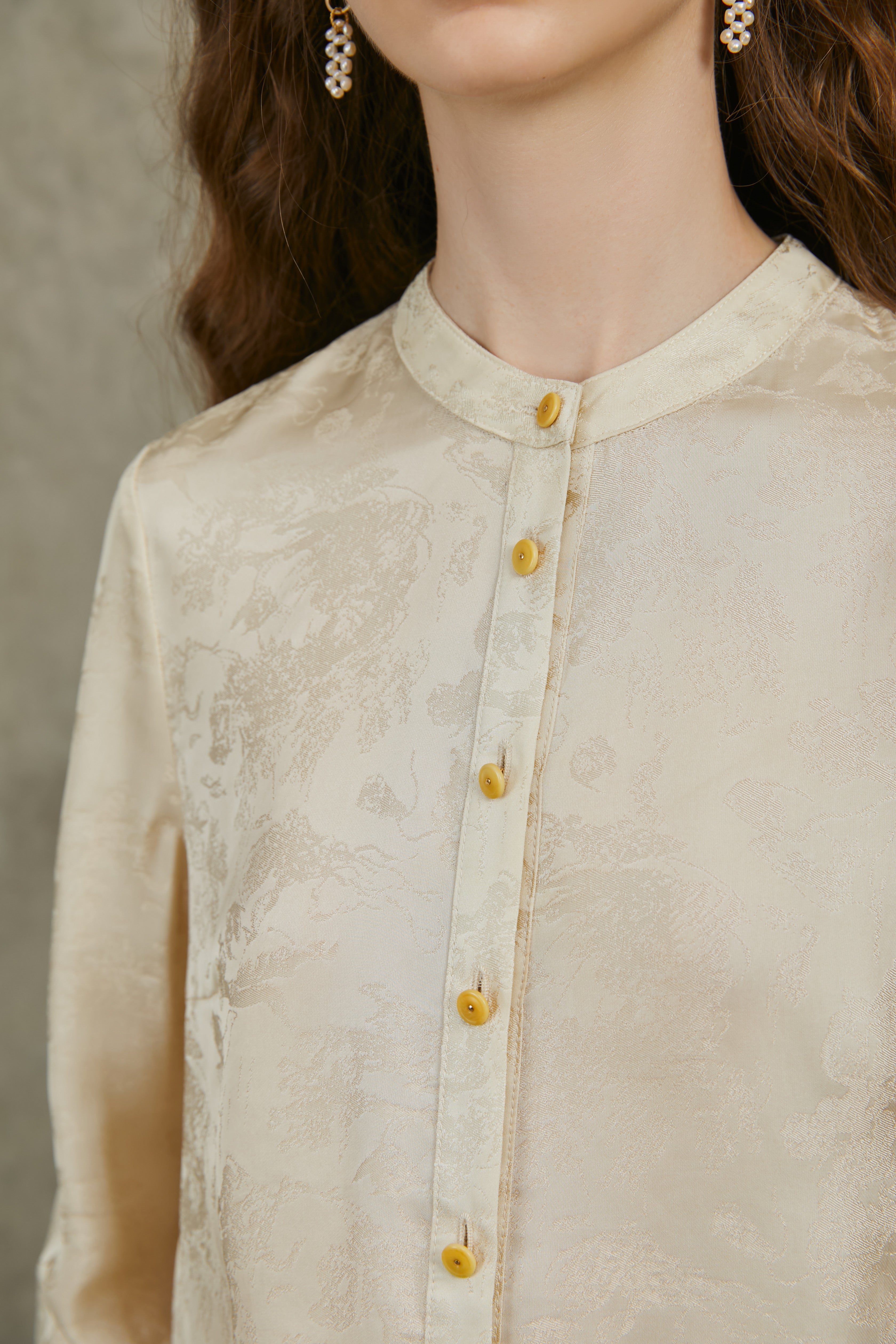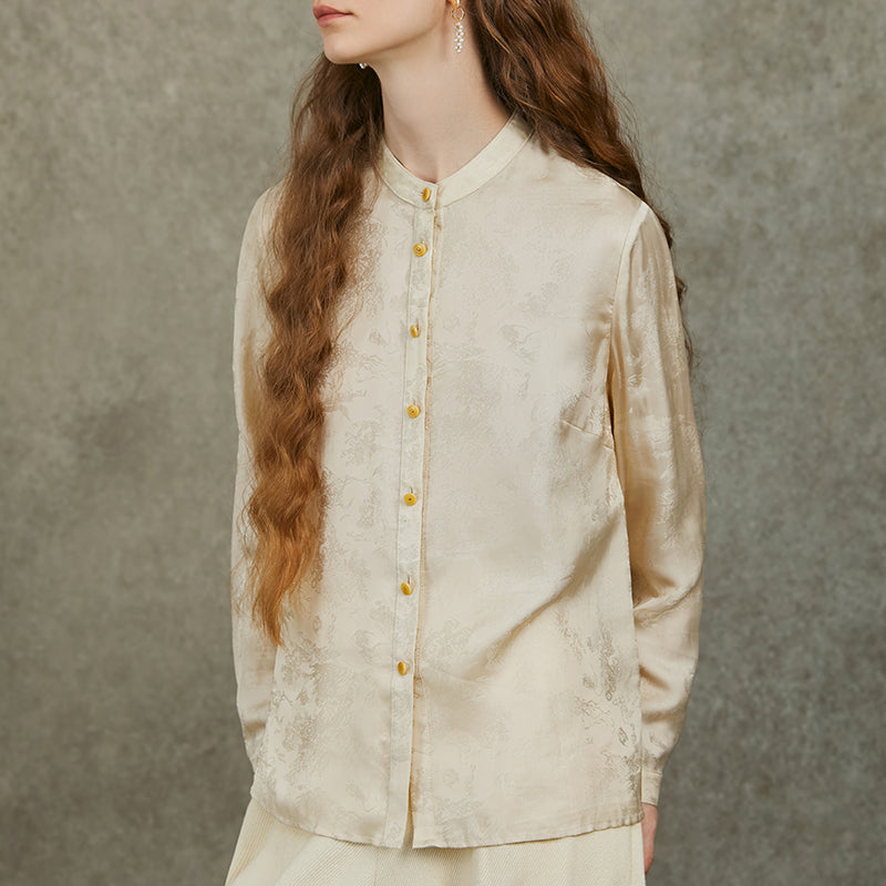 Famecoco Mandarin Collar Jacquard Blouse