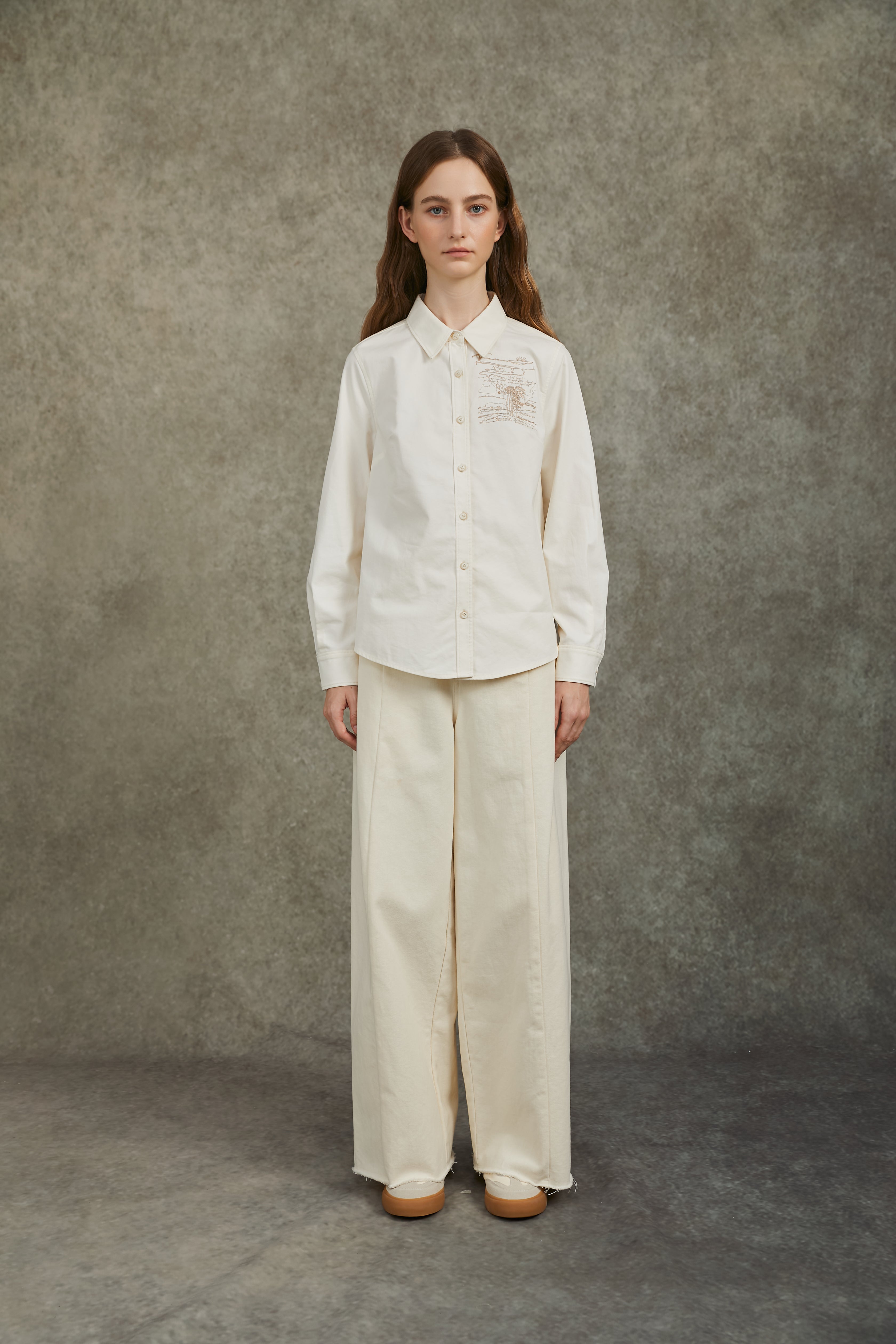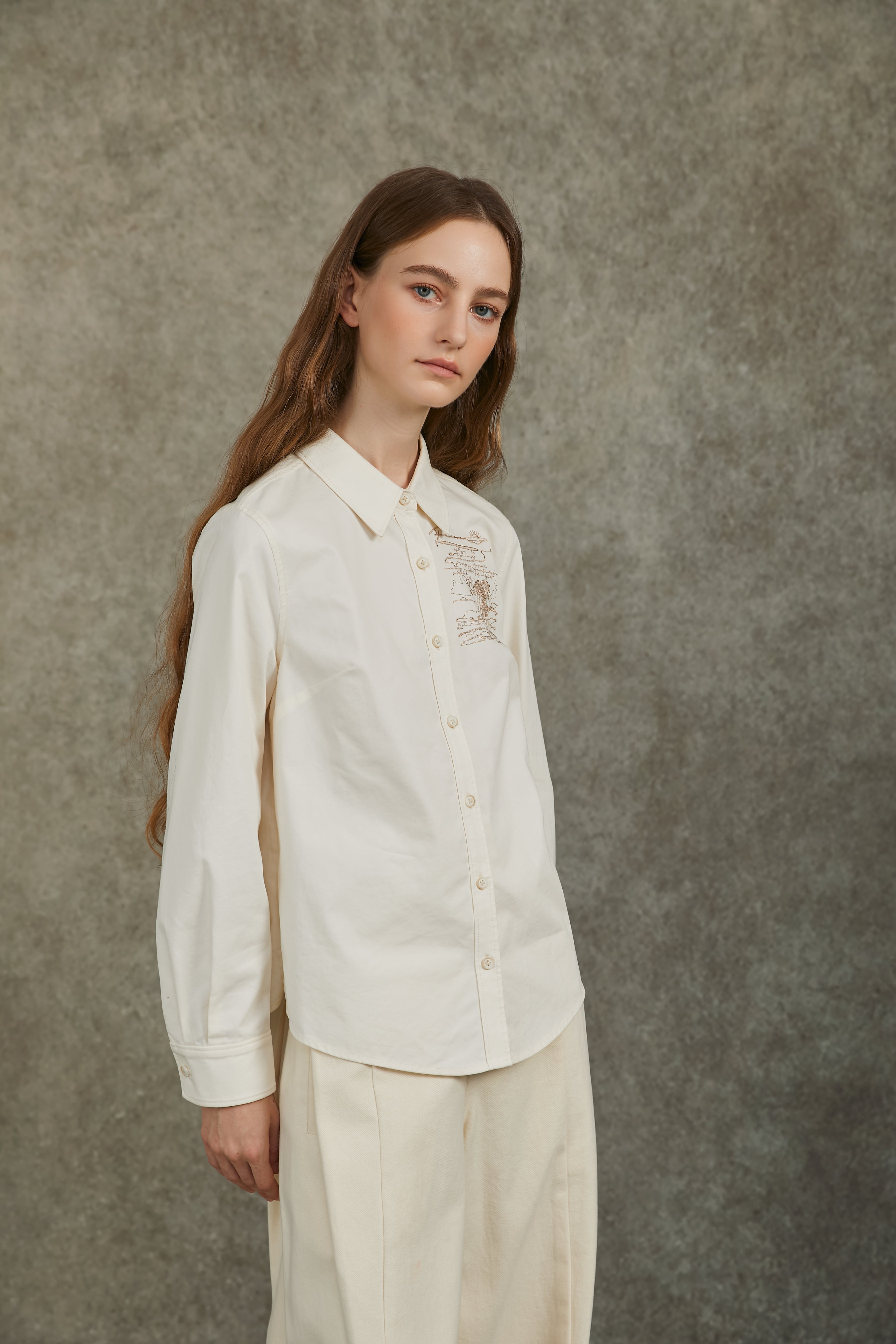 Famecoco Long-Sleeve Shirt with Embroidered Graphic