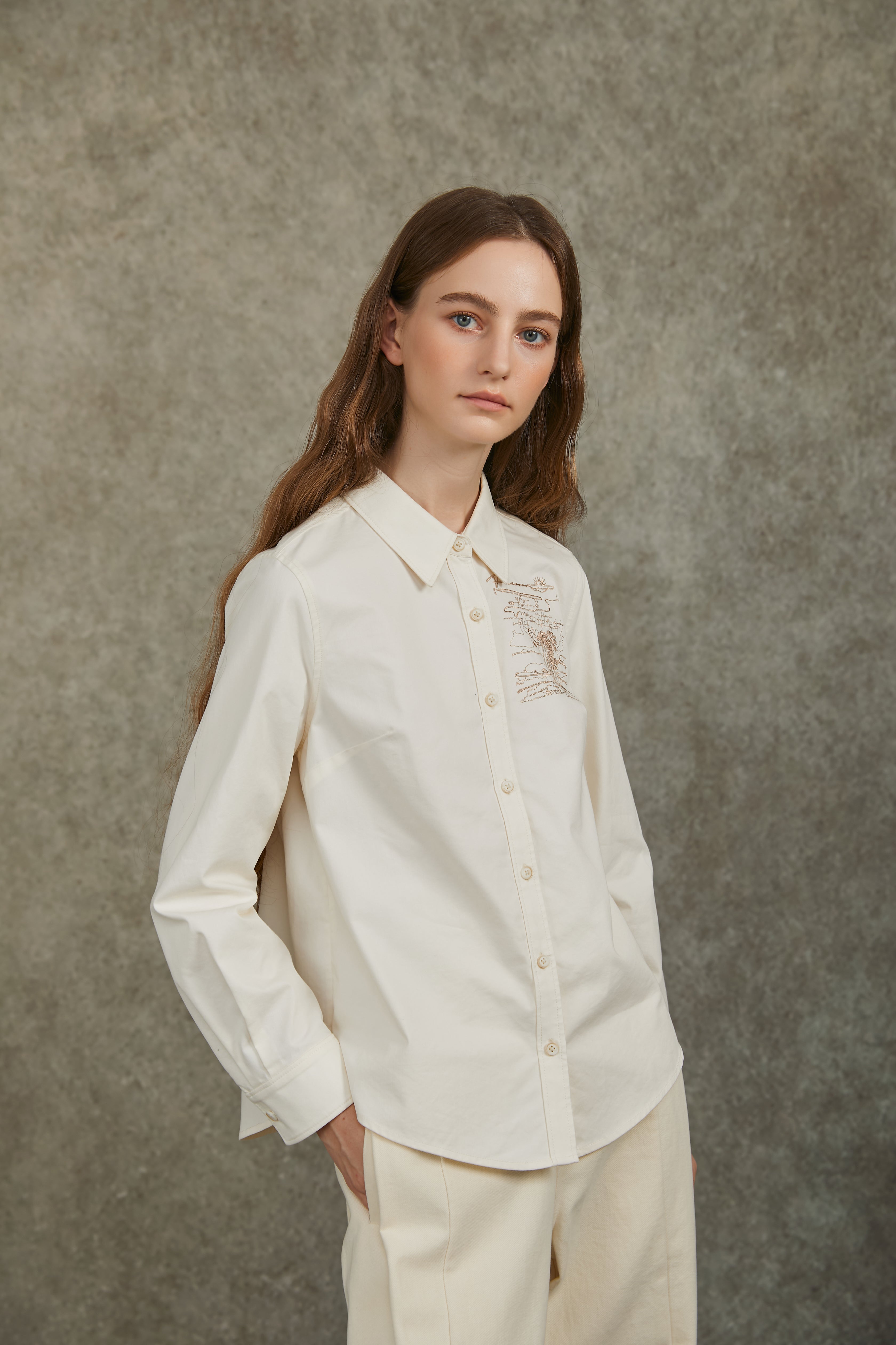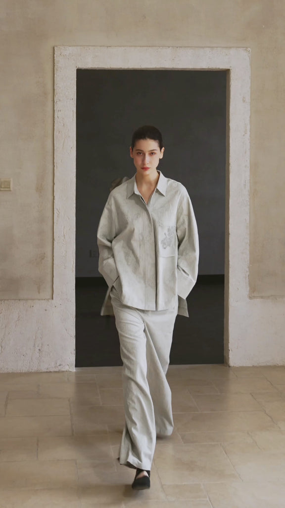 Famecoco Modern Cotton Shirt with Beaded Pocket