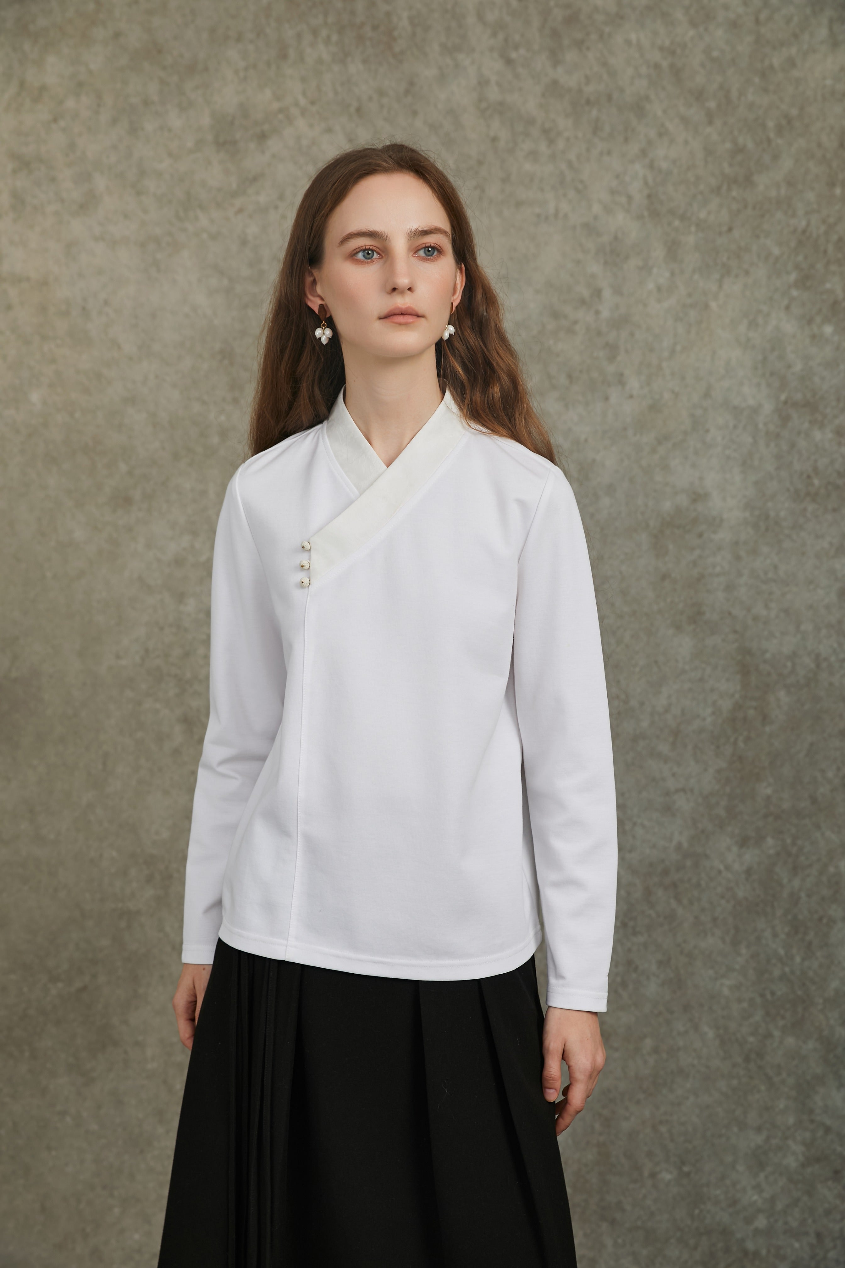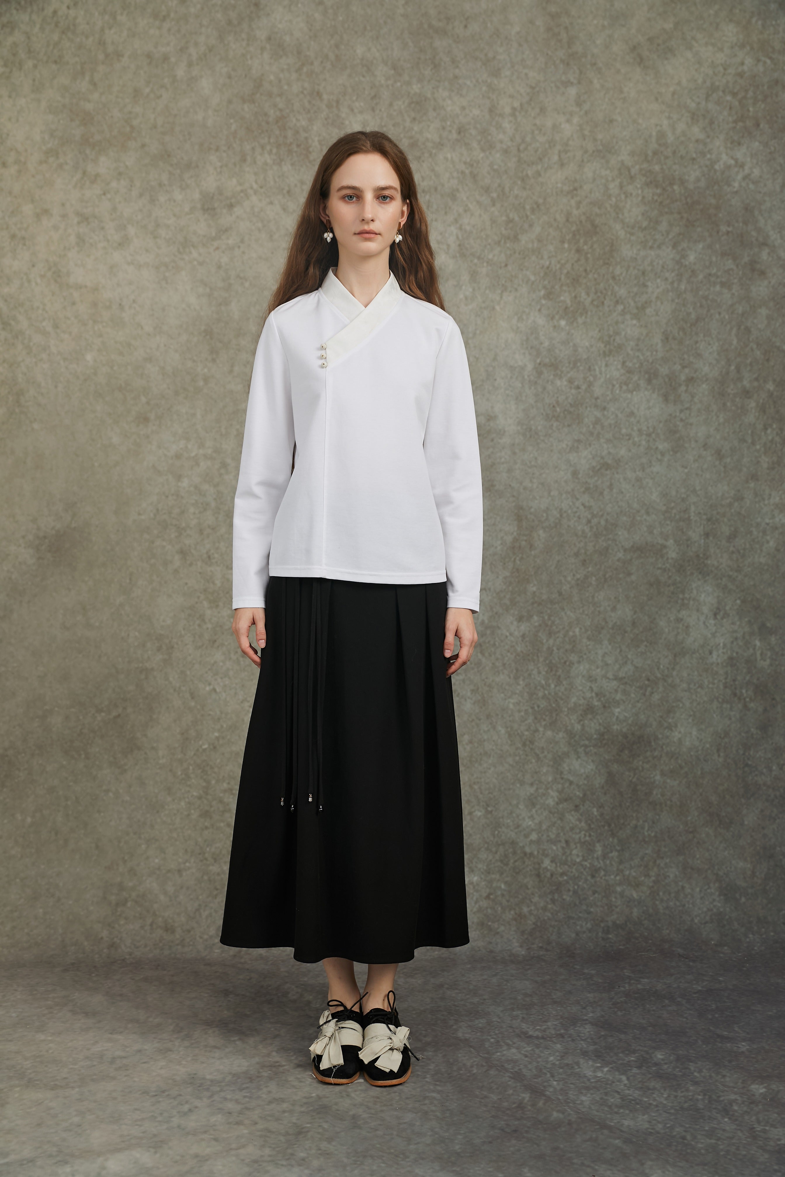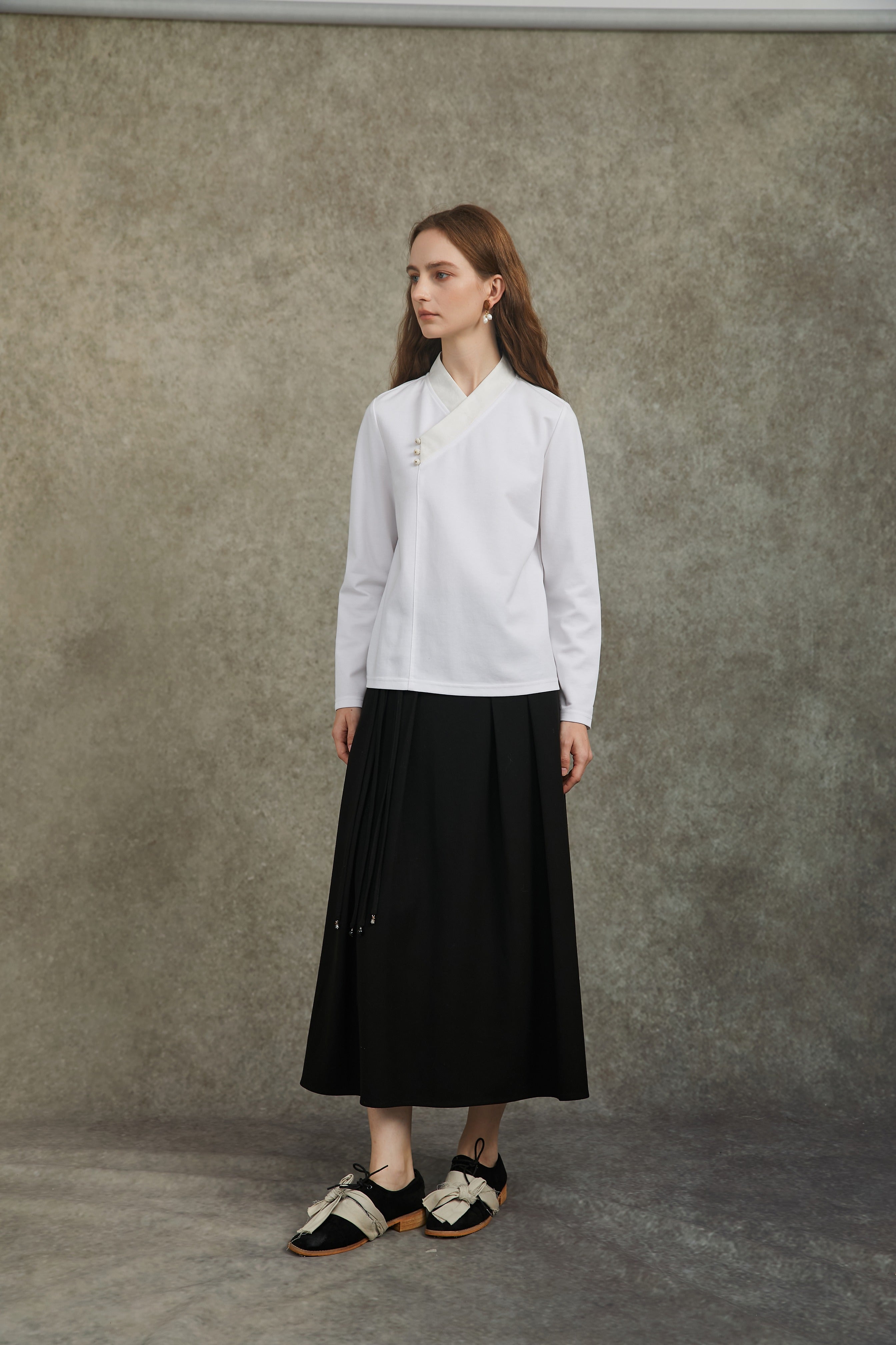 Famecoco Cotton‑Stretch Asymmetric Shirt