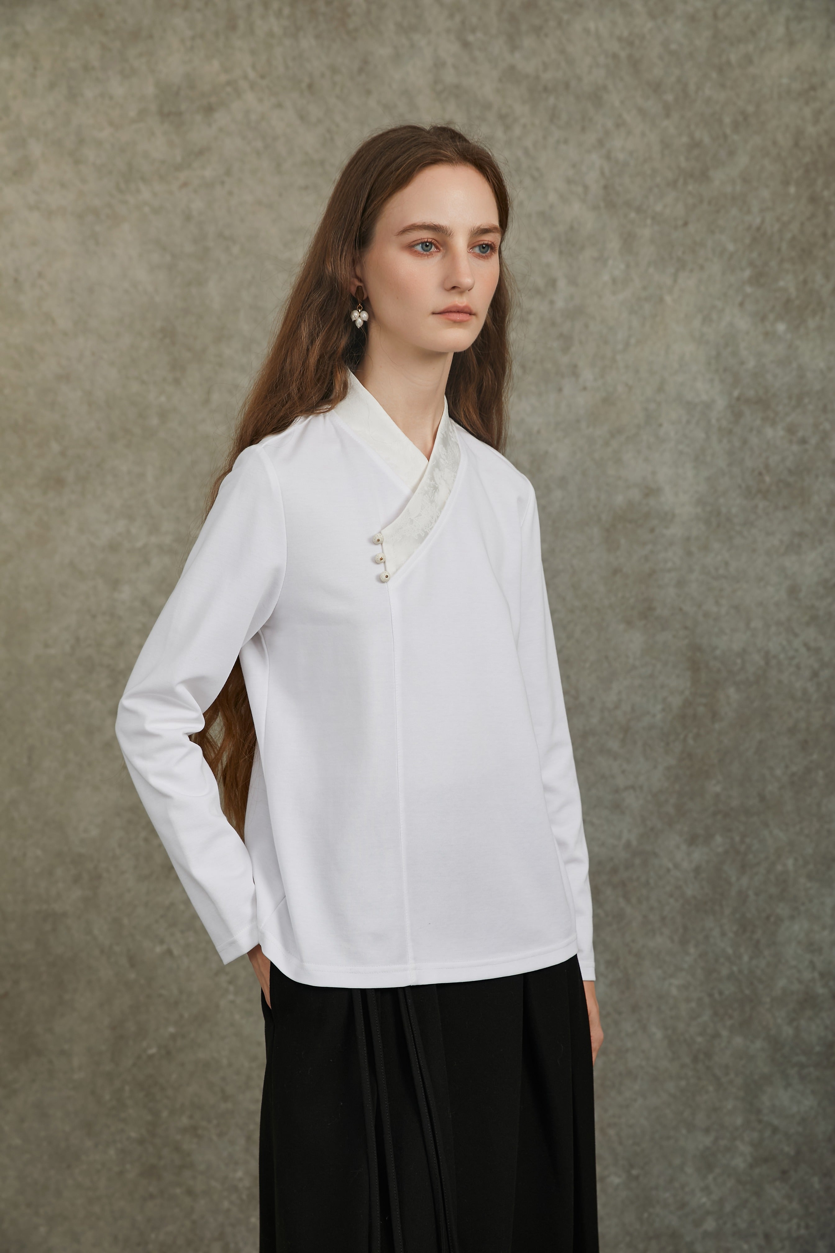 Famecoco Vintage Cross-Collar Jacquard Top