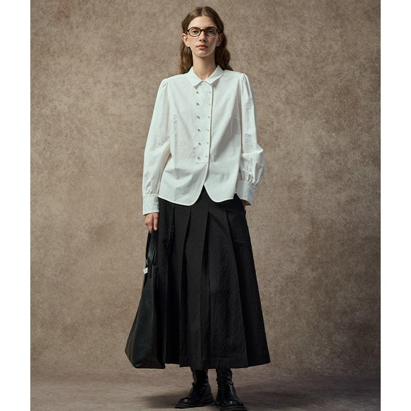 Famecoco Embroidered Collar Long‑Sleeve Blouse