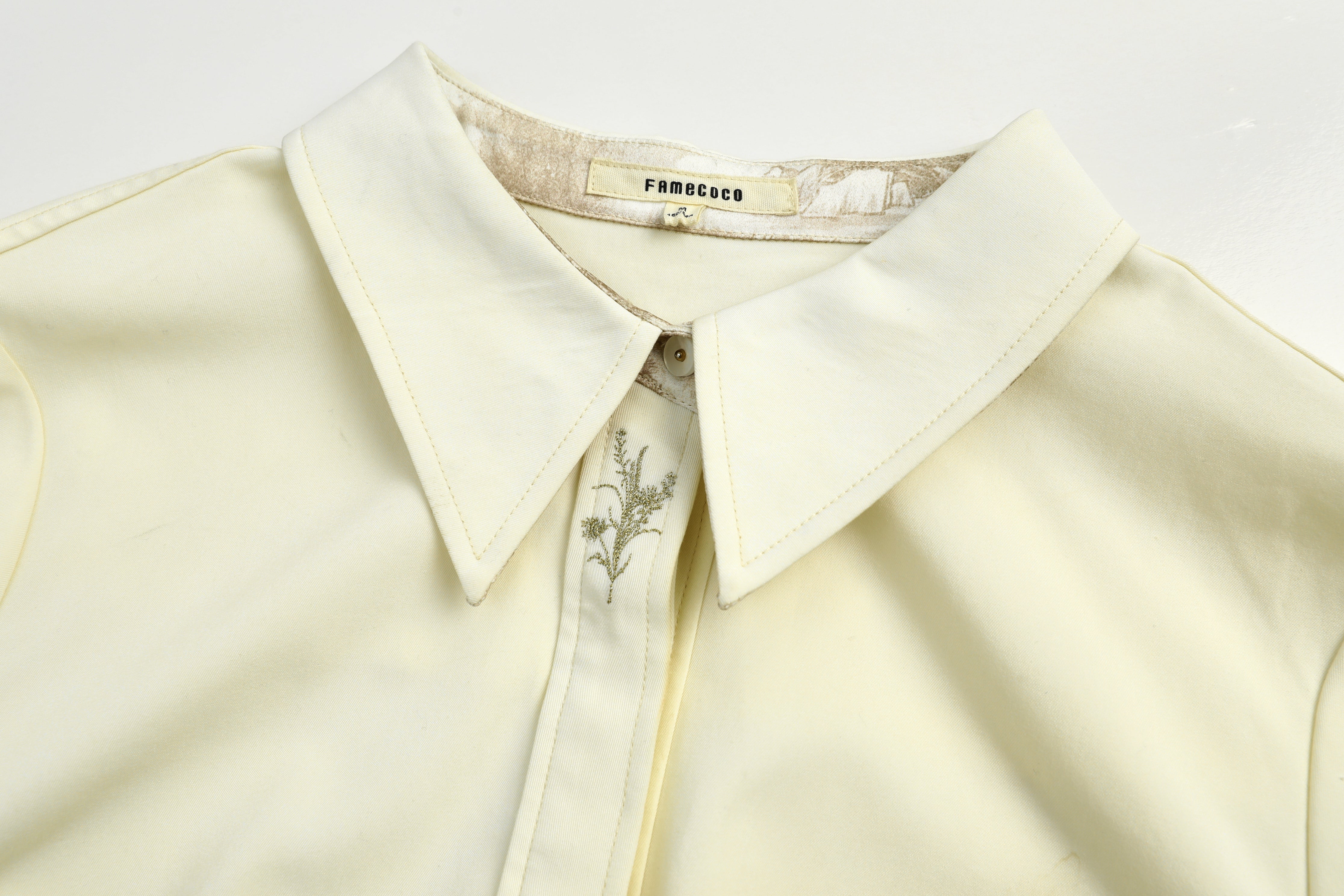 Famecoco Embroidered Collar Long‑Sleeve Blouse
