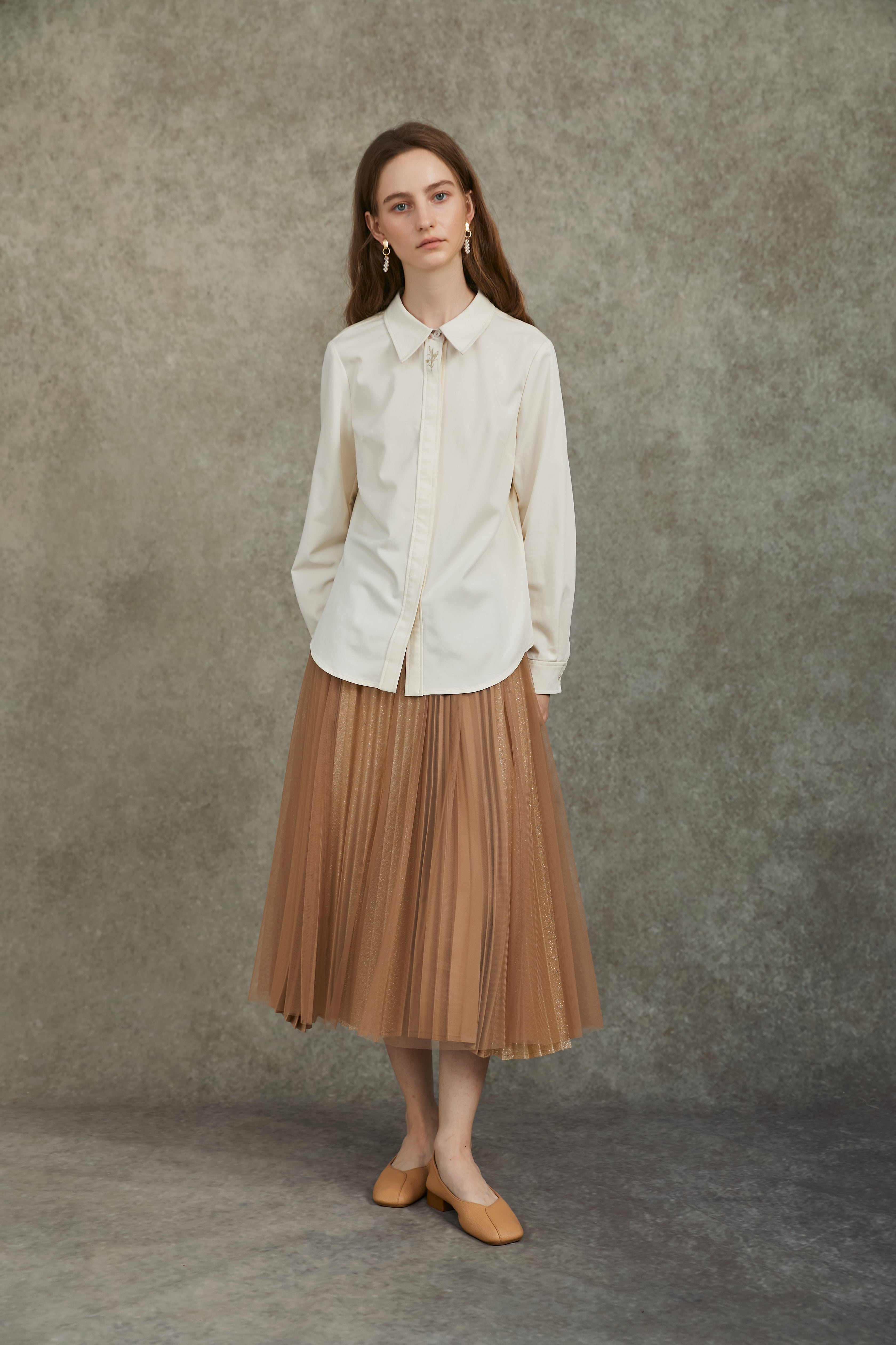 Pair with a pleated midi skirt for polish, or wide‑leg trousers for modern office style.