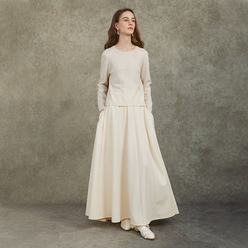 A flowing maxi skirt with soft pleats and an elegant high waist. Crafted from a viscose‑blend fabric with full viscose lining for a graceful drape and all‑day comfort.