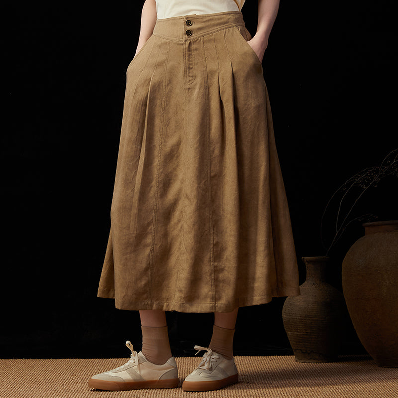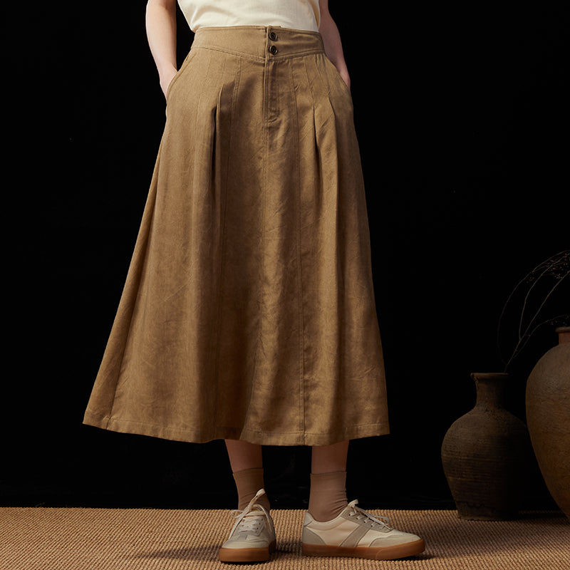 Famecoco Washed Lyocell A-Line Midi Skirt