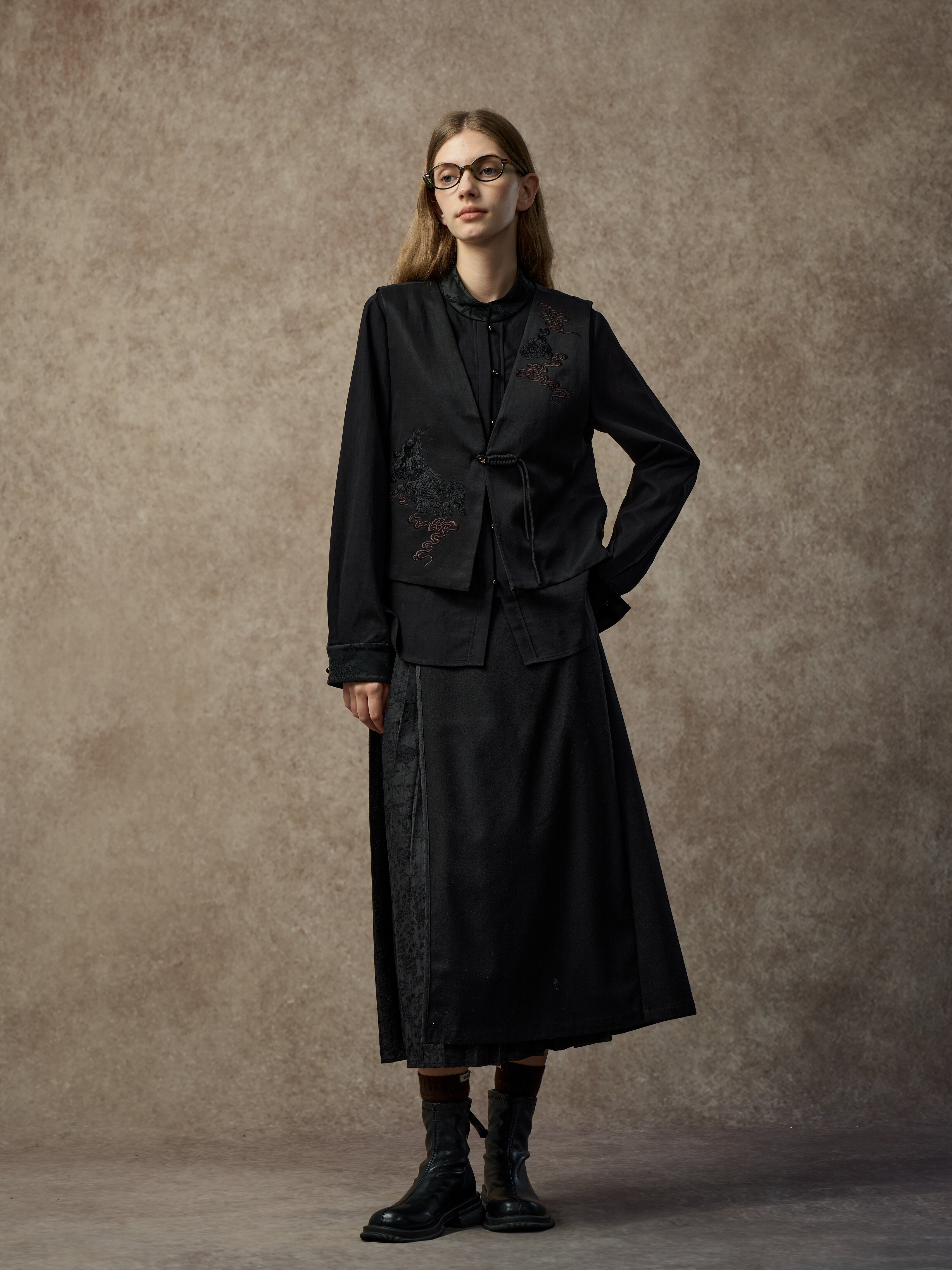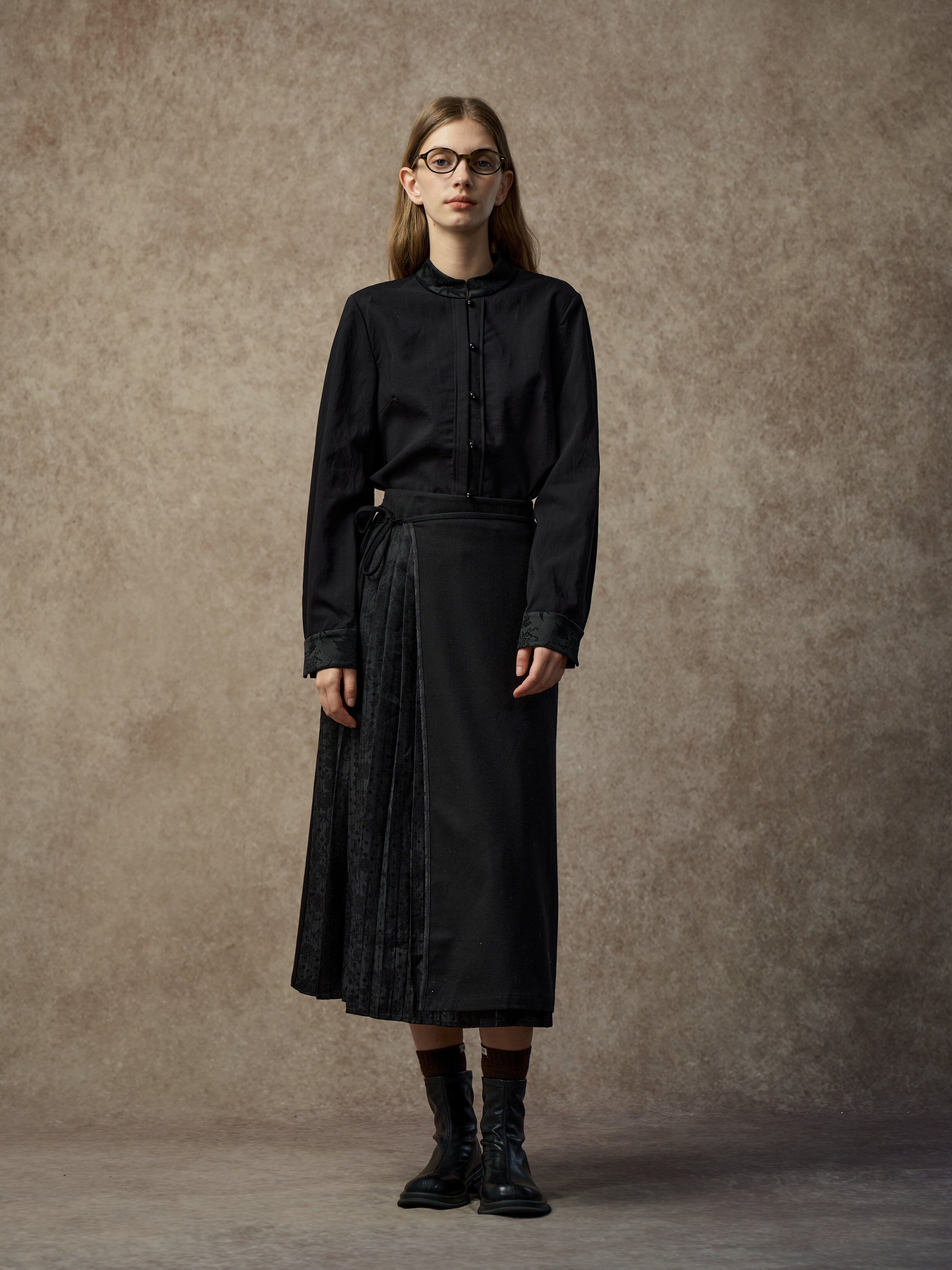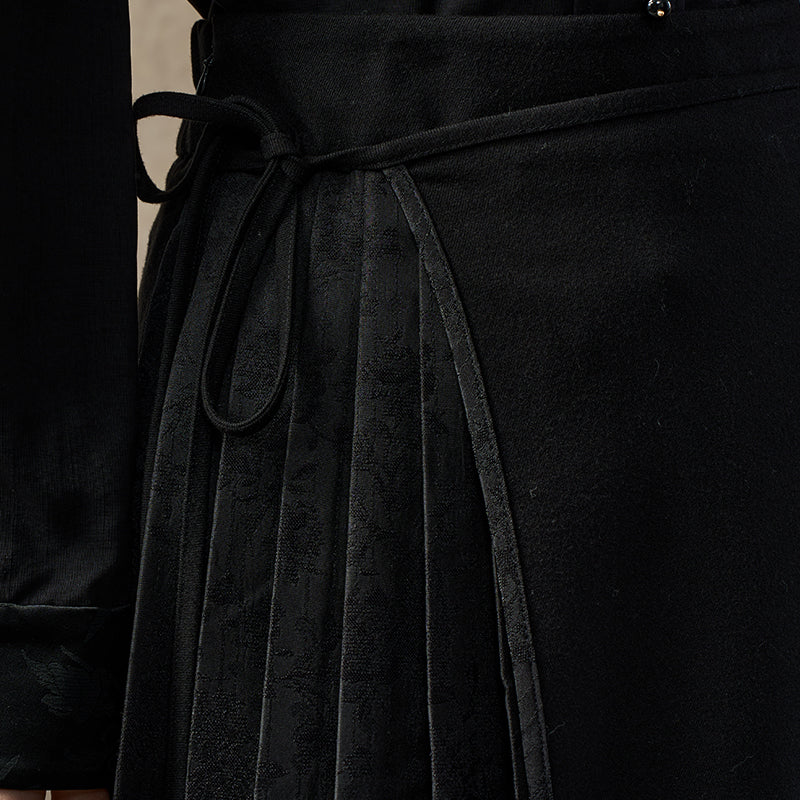 Famecoco Oriental Jacquard Pleated H-Line Skirt