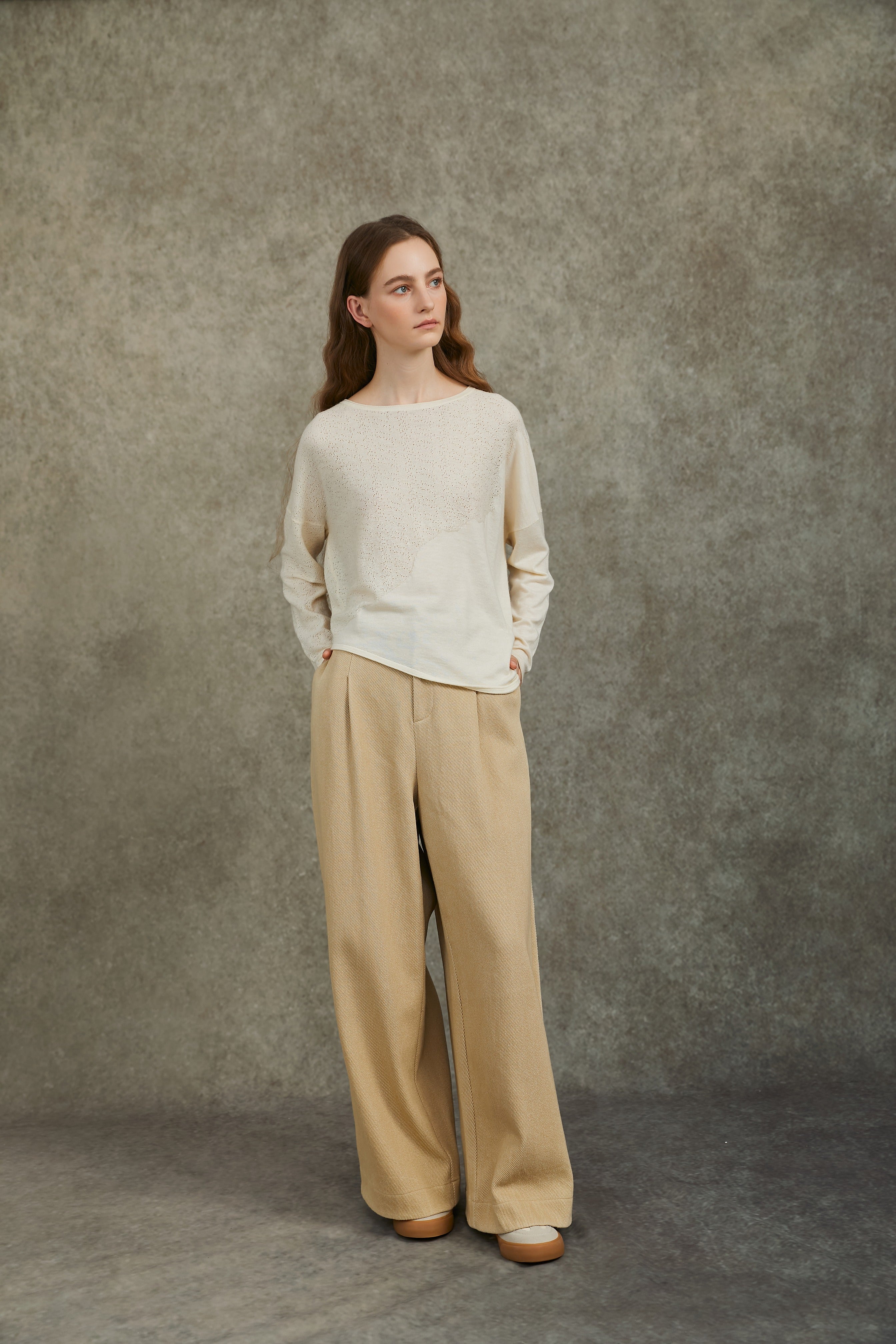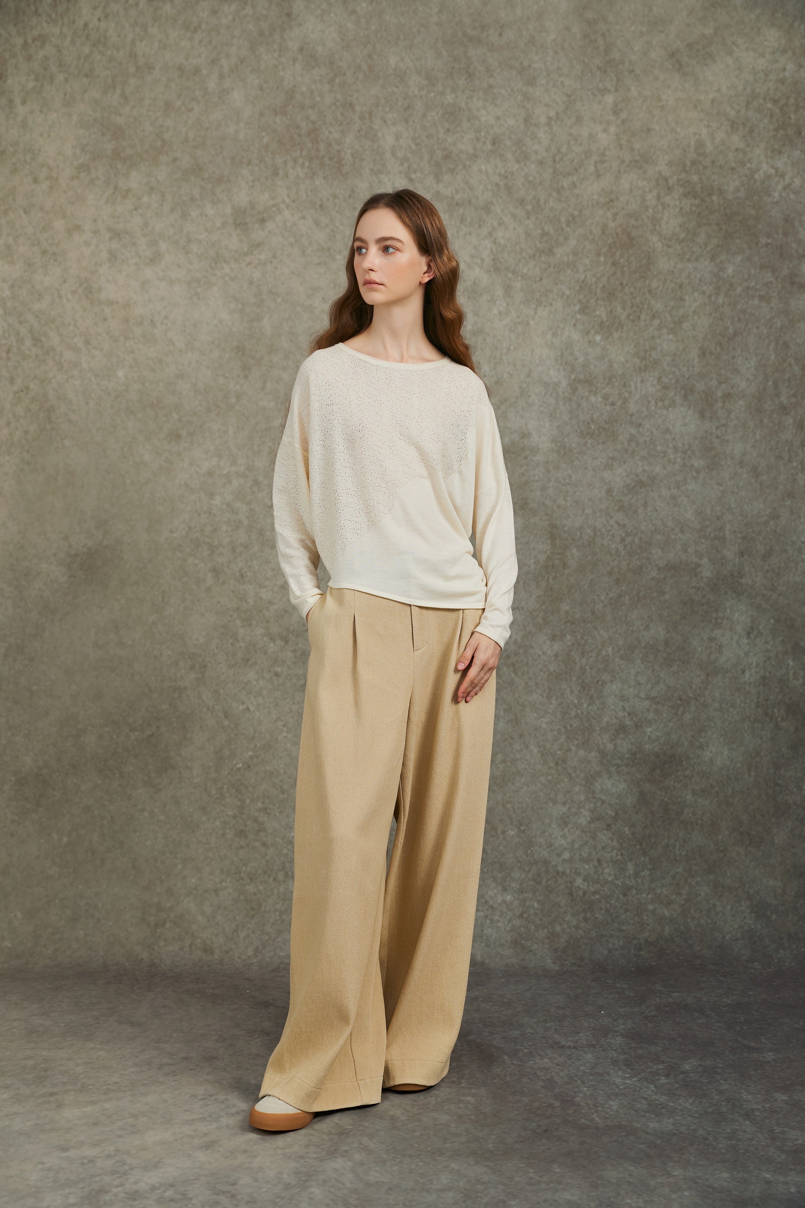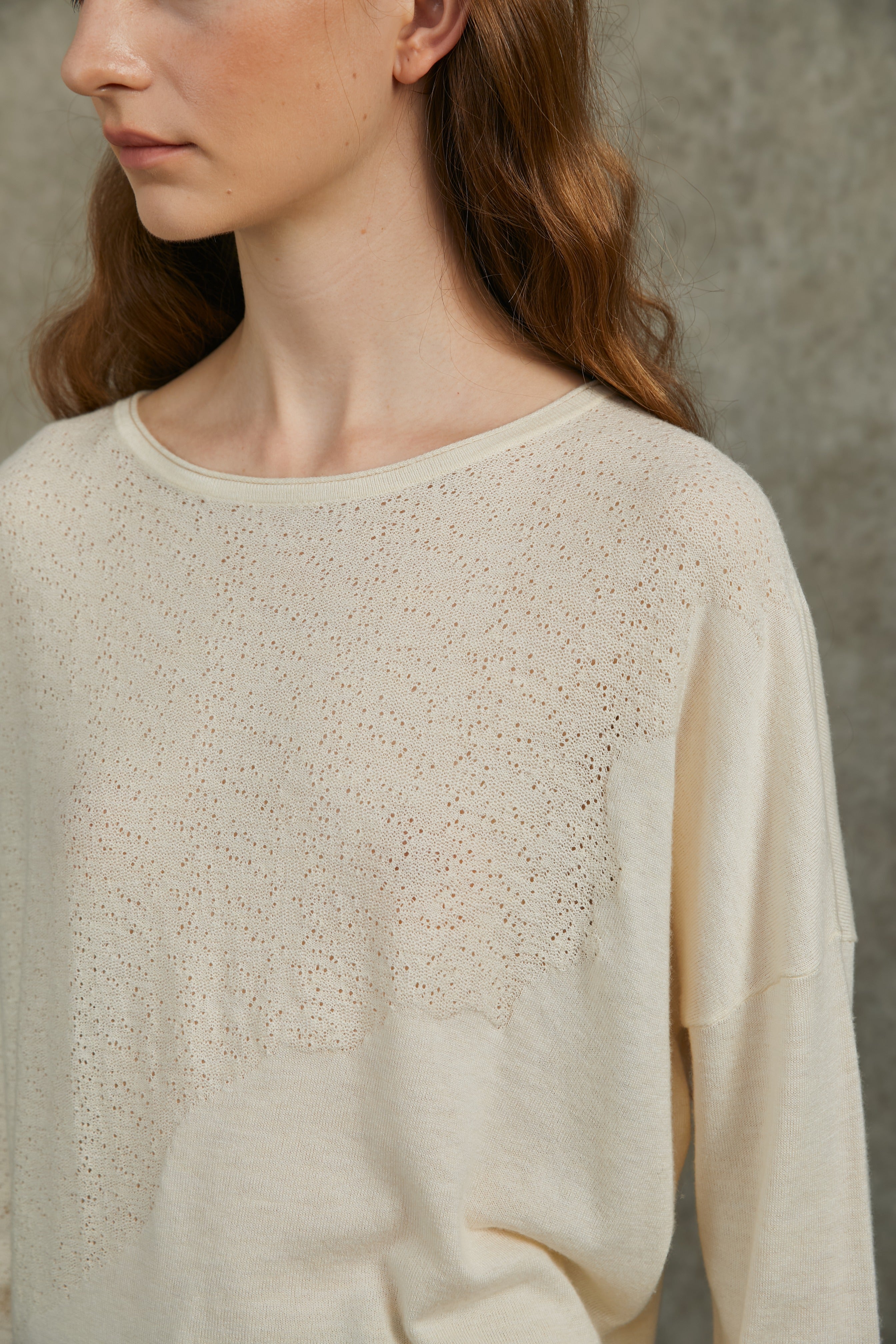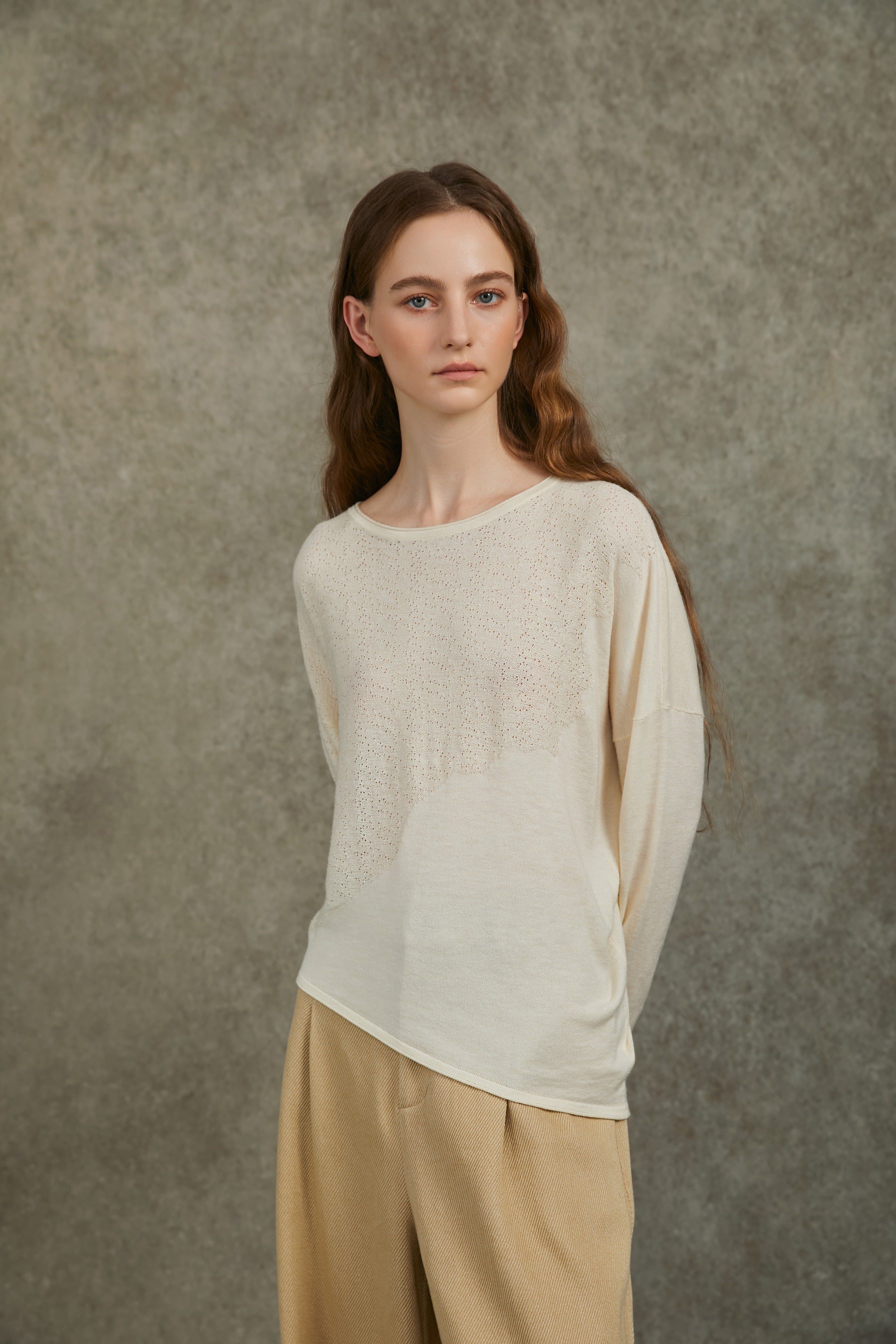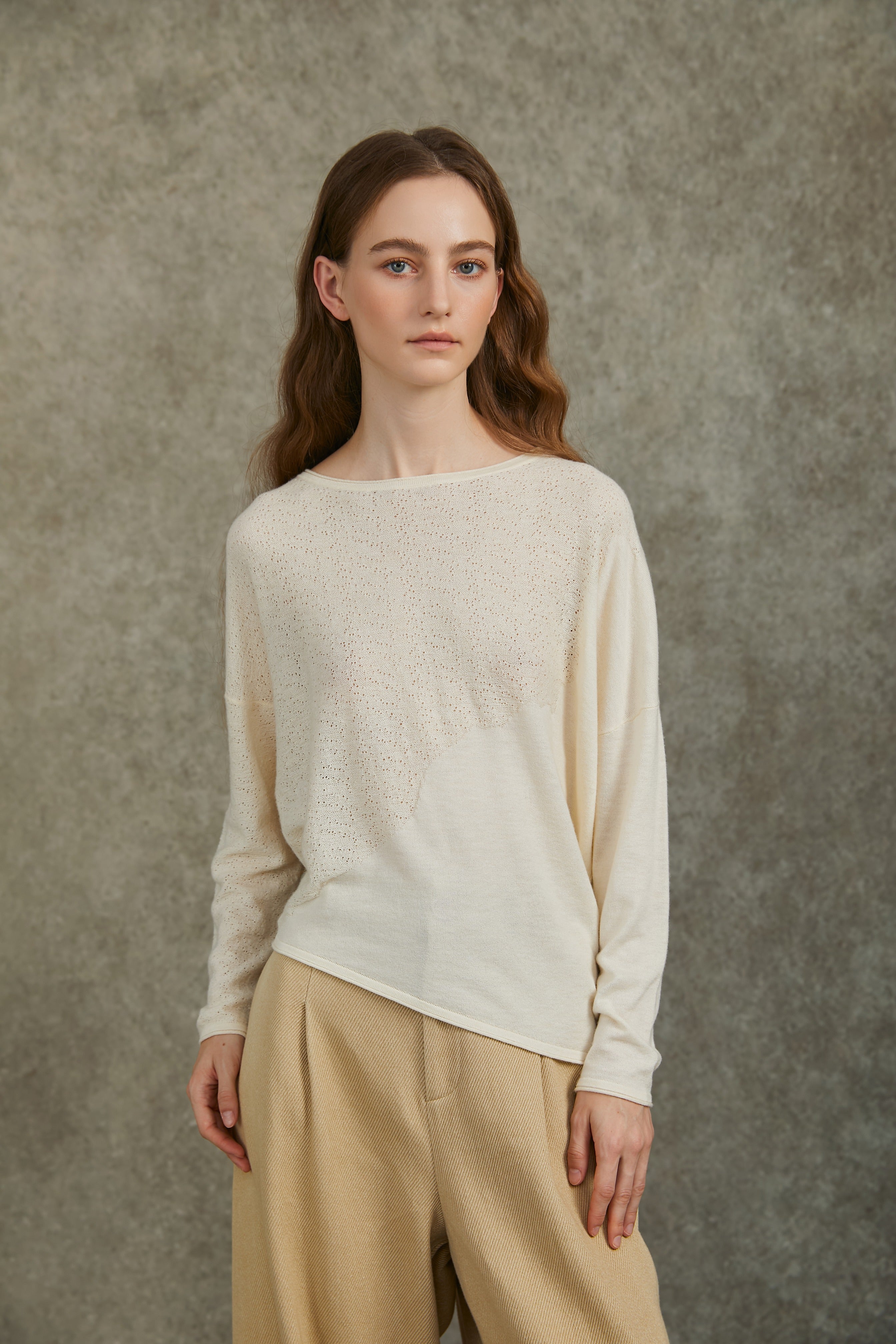 A soft batwing sweater with wave‑pattern panels and an asymmetrical hem. Designed with dropped shoulders and a relaxed fit for comfort, it’s breathable, UV‑protective, and anti‑pilling—ideal for year‑round wear.
