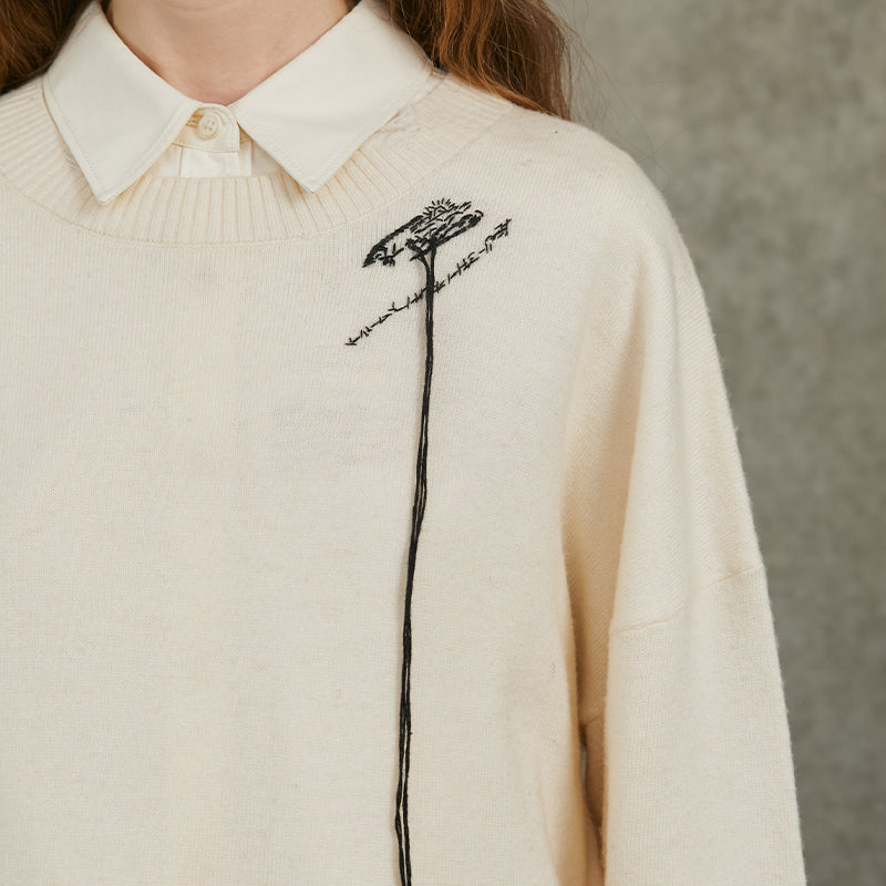 Famecoco Soft Wool Embroidered Pullover Sweater