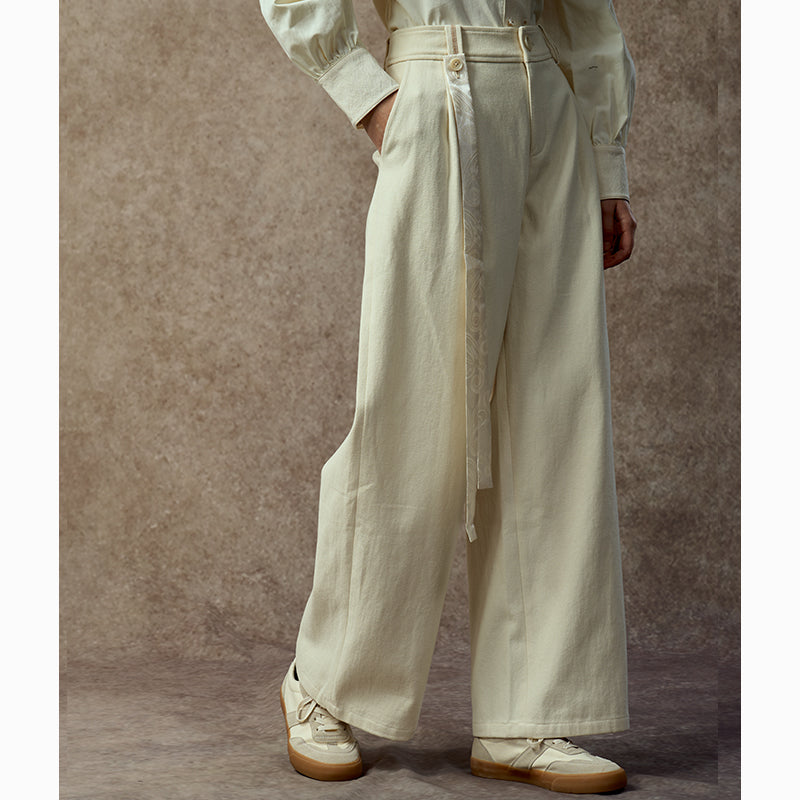 - Design: Wide-leg, detachable belt, high-waisted, wrinkle-resistant